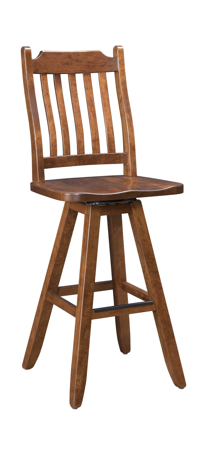 Presenting the Easton Pike Swivel Stool. Meticulously crafted with comfort in mind, this exquisite stool is made of solid cherry and features a memory swivel. Stocked in counter and bar height in the finish shown. Furthermore, you can personalize this stool with a wide array of customizable colors and wood options and even a stationary-style stool.