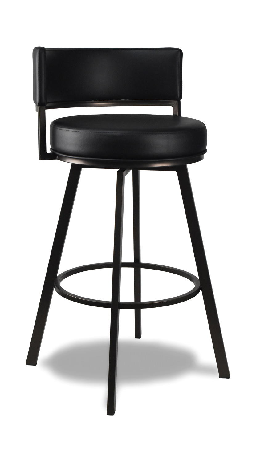 The Liam swivel stool is a classic addition to your kitchen island bar area. This fully assembled stool is stocked in 2 vinyl colors and in counter stool height and bar stool height. The base is welded powder-coated metal and has a 360-degree swivel seat. The stools are engineered to hold 250 lb.