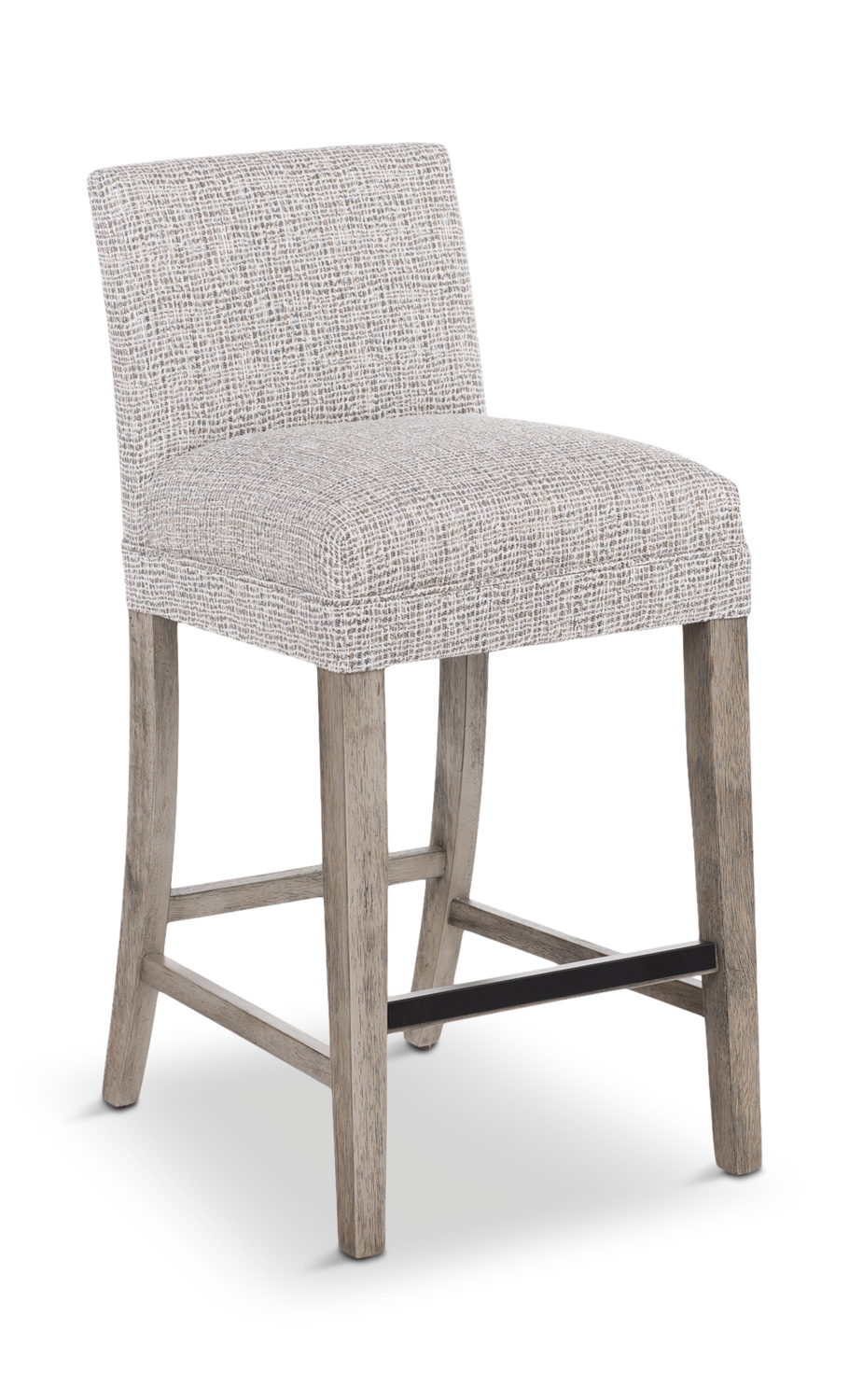 Introducing the Penny Stationary Stool by HOM Furniture, a beautifully crafted piece that exudes elegance and sophistication. This stunning counter or bar stool boasts exceptional craftsmanship, with a sturdy hardwood frame featuring mortise & tenon joinery for durability and stability. The spring seat ensures comfort and support, making it the perfect addition to your dining or entertaining space. Handcrafted in the USA, this transitional style stool is stocked in a chic grey color with a light finish that complements any decor. Looking to add a personal touch? Custom fabrics are available for those who desire a unique look.