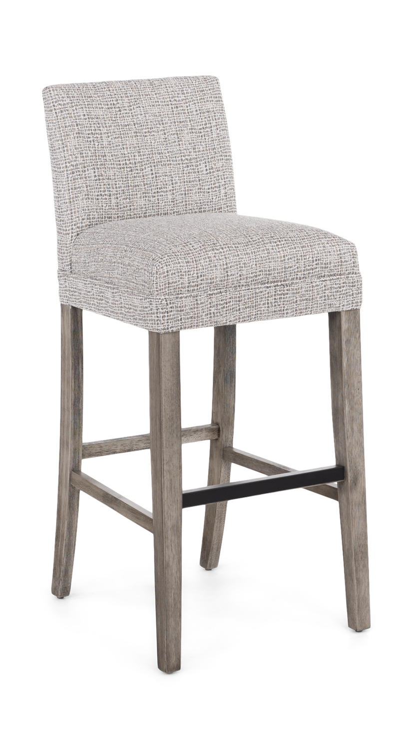 Introducing the Penny Stationary Stool by HOM Furniture, a beautifully crafted piece that exudes elegance and sophistication. This stunning counter or bar stool boasts exceptional craftsmanship, with a sturdy hardwood frame featuring mortise & tenon joinery for durability and stability. The spring seat ensures comfort and support, making it the perfect addition to your dining or entertaining space. Handcrafted in the USA, this transitional style stool is stocked in a chic grey color with a light finish that complements any decor. Looking to add a personal touch? Custom fabrics are available for those who desire a unique look.