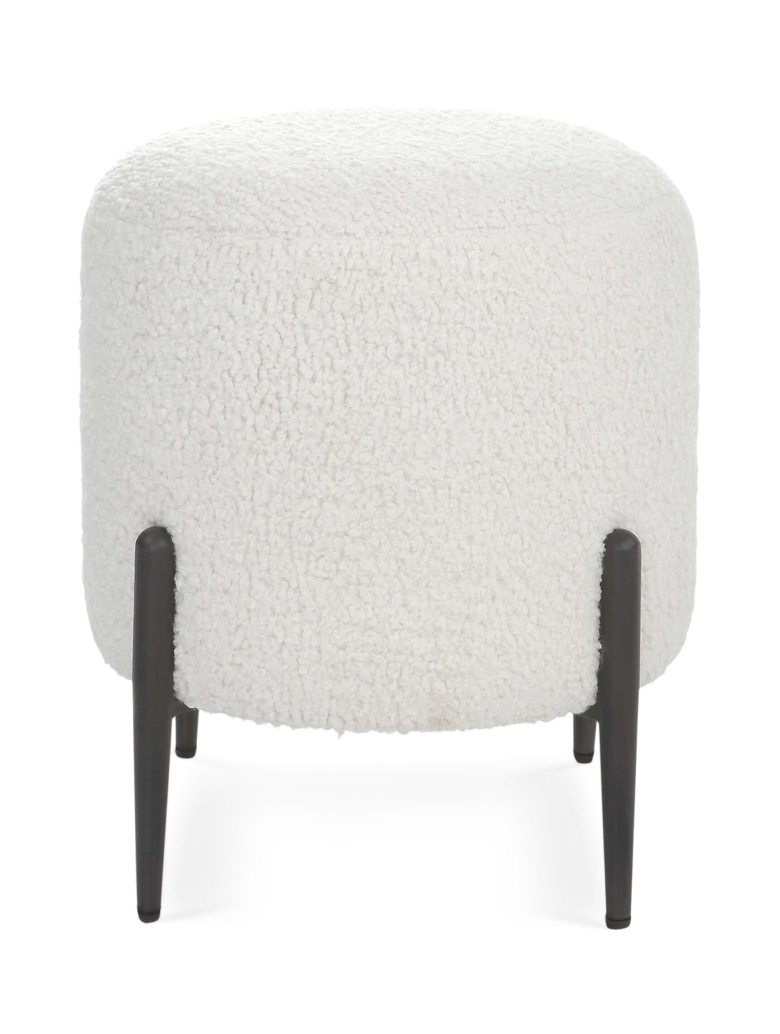 - This Plush Ottoman Is Covered In A Luxurious White Faux Shearling, Suspended Within Satin Black Finished Metal Legs. Versatile And Stylish, This Piece Can Be Used As A Seat Or Footrest, Grouped Together Or As A Singular Accent Piece.