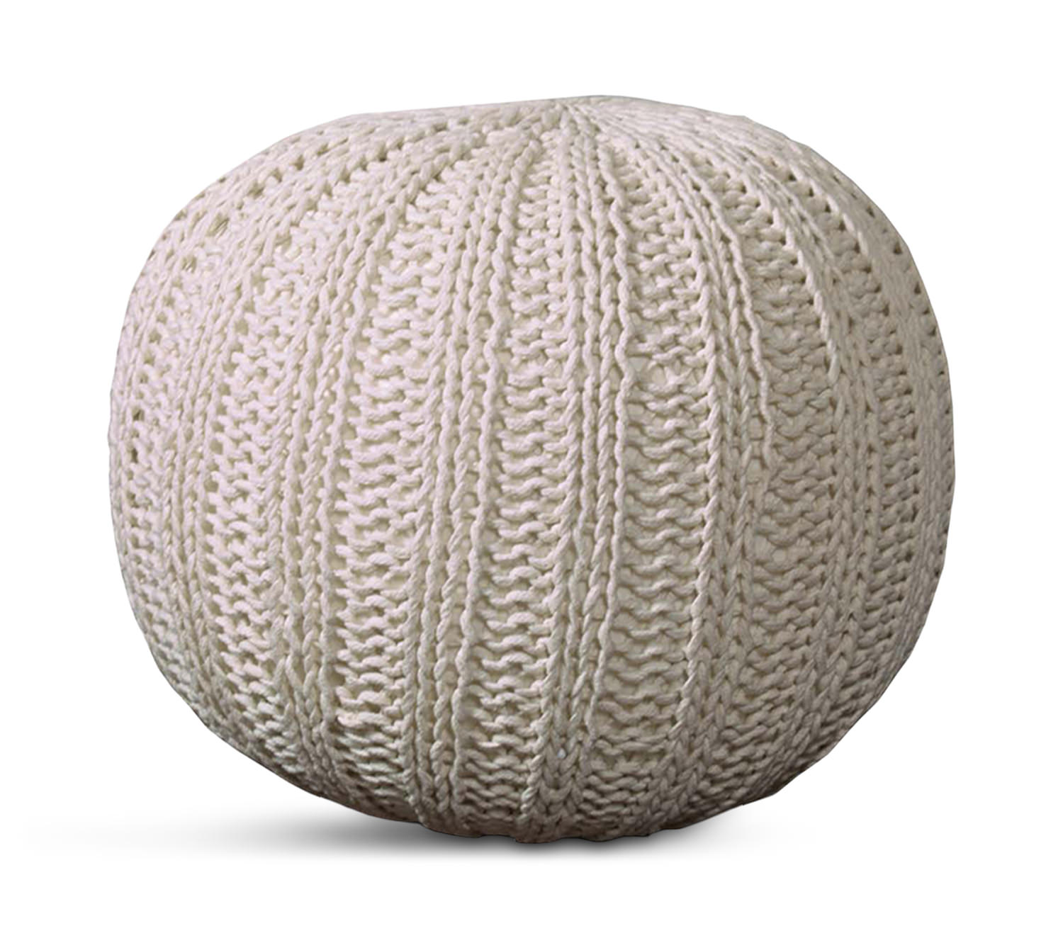 Introducing the Gerty Knitted Pouf from HOM Furniture - a charming accent piece for your home décor. This pouf features a beautiful bone white color and is handcrafted from 100% cotton, ensuring both quality and comfort. The knitted pattern adds a touch of softness to the overall design, making it a cozy addition to any room. Its round shape adds a unique flair and versatility to your space. Elevate your living area with the Gerty Knitted Pouf, a great choice for those seeking a stylish and functional piece for their home.