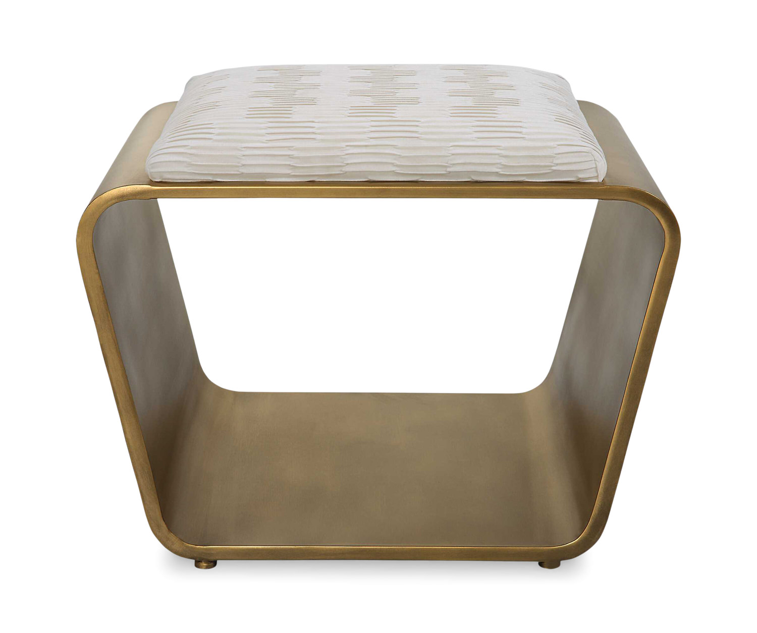 - Stylish And Glamorous, This Unique Accent Bench Features An Off White Pleated Fabric Atop A Looped Metal Base Finished In Antique Gold.