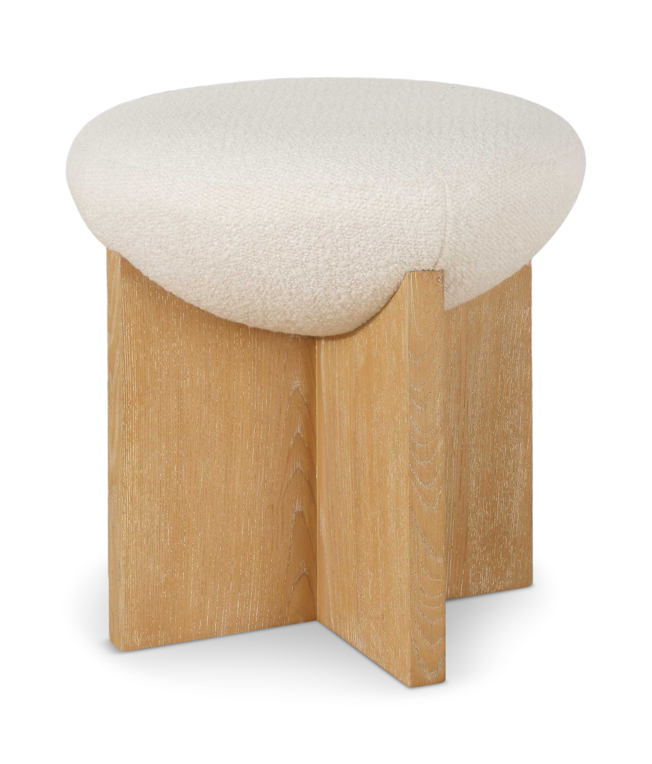 • The Lainie Accent Stool Is A Minimalist Statement Piece, Featuring A Plush Seat That Is Cradled By A Contoured Base In Naturally Finished Oak Veneer. Upholstered In A Textured White Boucle With A Toxin-free, Eco Friendly Treatment To Help Resist Water Based Stains.