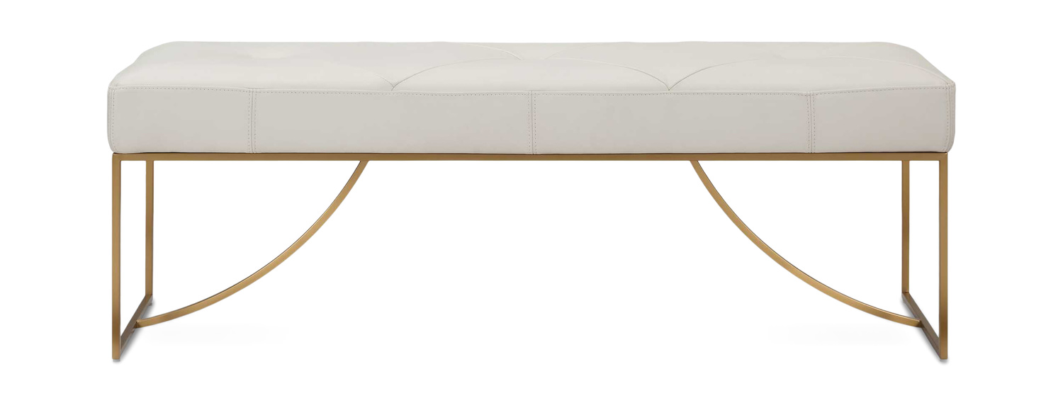- Elegant Curves Of The Stainless Steel Base In Plated Brushed Brass Support The Plush Diamond Tufted Seat Upholstered In Ivory Top Grain Leather. Because Leather Is A Natural Product, Both Texture And Color Will Vary Slightly, Enhancing Leather's Uniqueness.