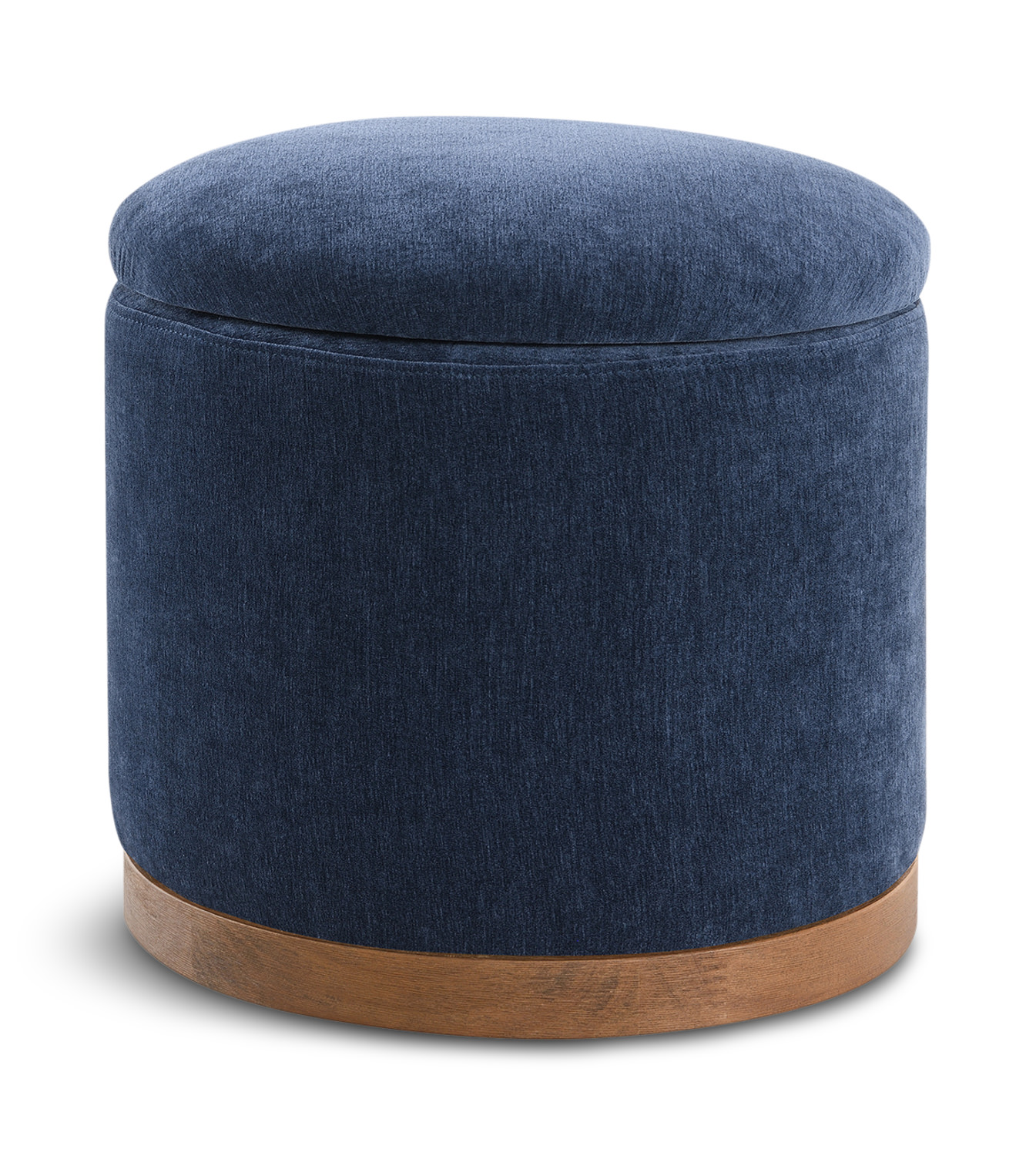Introducing the versatile Swivel Storage Ottoman from HOM Furniture! This stylish piece features a reversible top, allowing you to easily switch up your décor whenever you like. The convenient storage inside offers ample space to keep your living room tidy and organized. Wrapped in a beautiful blue polyester fabric, this ottoman adds a pop of color to any room. With its swiveling capability, you can easily adjust the position to suit your needs. Upgrade your living space with the Swivel Storage Ottoman from HOM Furniture today!