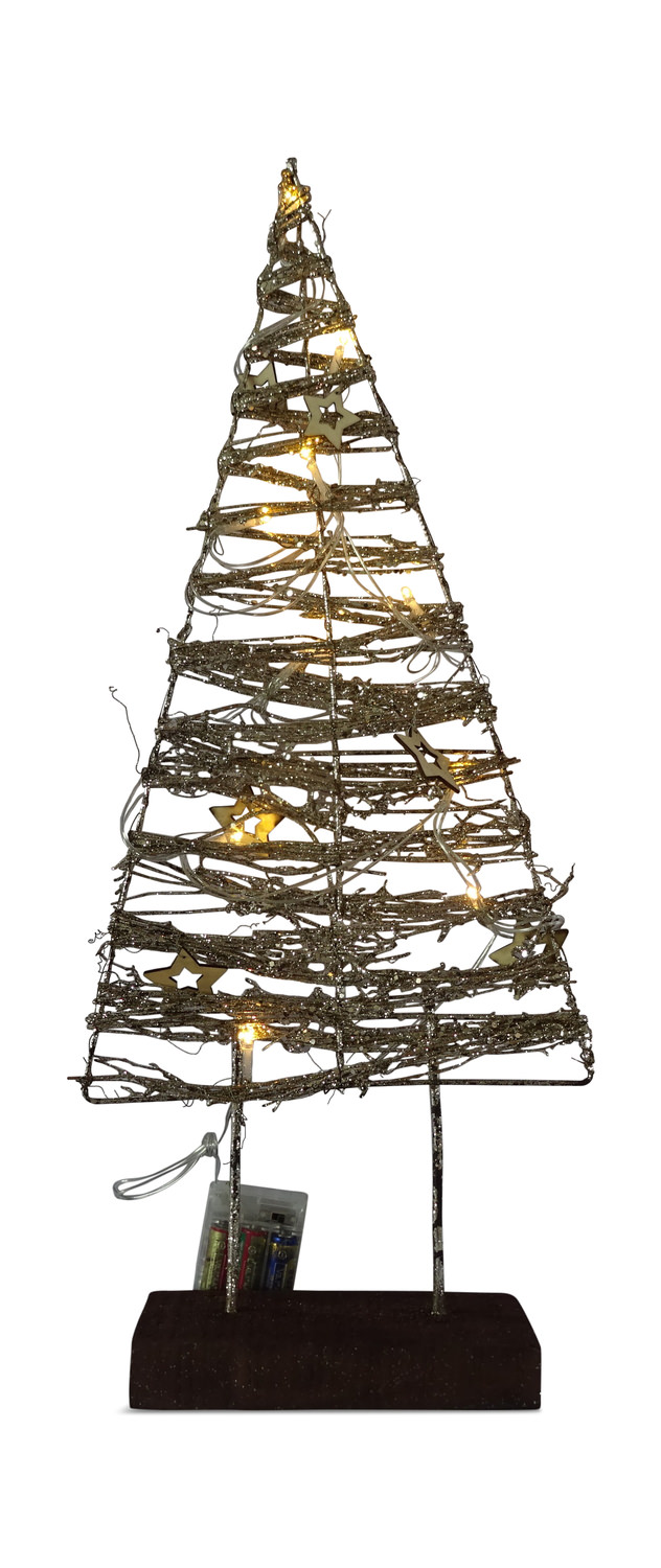 Supported by a wood block, the Northwoods Rattan Tree With Lights is a fun accent for the home through the holidays. Decorating the branches are wooden stars, making this piece great for either the tabletop or mantel.