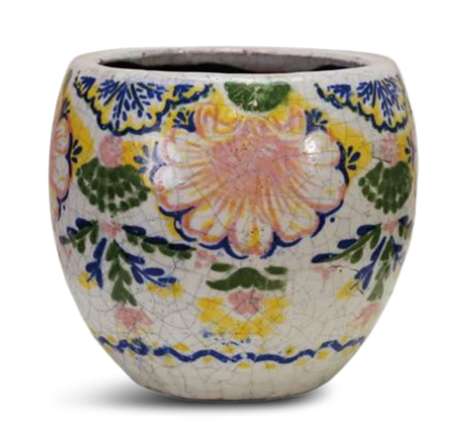 Introducing the 5" Secret Planter by HOM Furniture, where nature meets artistry! Add a pop of color to your space with this charming terracotta planter featuring a vibrant floral pattern in bright hues of yellow, blue, green, and pink. The unique crackle glaze effect adds a touch of elegance and sophistication to each piece, making every planter one-of-a-kind. Perfect for holding a 5-inch pot, this planter is not just a functional piece but also a beautiful decorative accent for your home or office.