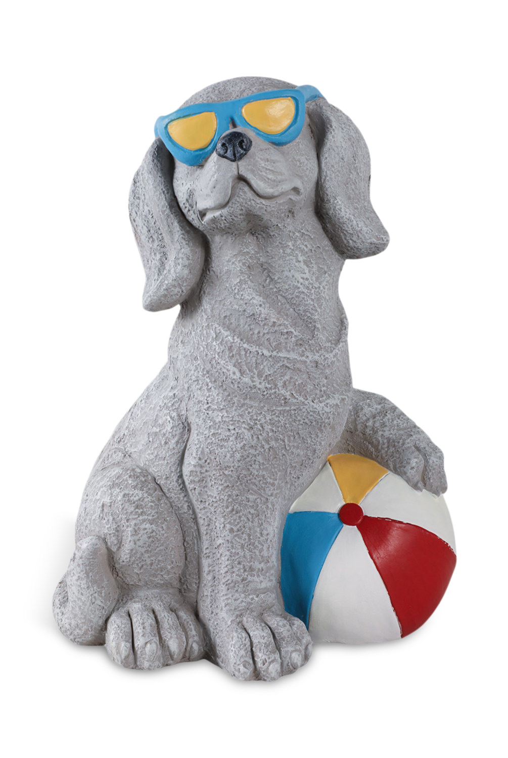 Introducing the Beach Dog statue from HOM Furniture – the perfect summer companion for your home décor! This playful grey pup is decked out in vibrant blue sunglasses and is ready for some fun in the sun with his paw playfully holding down a colorful beach ball. Add a touch of summer-inspired charm to your living space with this delightful statue that captures the essence of carefree beach days. Bring a smile to your face every day with the Beach Dog statue from HOM Furniture!