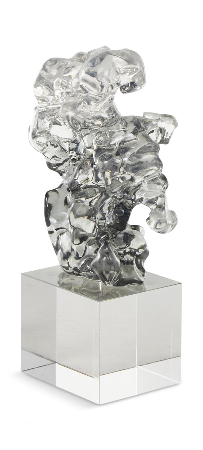 Introducing the Freeform Glass 10" Sculpture by HOM Furniture. Elevate your space with this unique piece crafted from high-quality glass. The asymmetrical design features a stunning ombre effect transitioning from clear to smoky grey, adding a touch of elegance to any room. Standing at 10" tall, this sculpture's freeform shape brings a contemporary twist to your décor. Add visual interest and sophistication to your space with this one-of-a-kind creation from HOM Furniture.