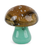 Add a touch of whimsy to your décor with this charming glass figurine from HOM Furniture. Crafted in the shape of a mushroom, it features a teal bottom and a striking mix of burgundy and golden yellow on top. This fun and whimsical piece will bring a pop of color and personality to any space. Perfect for adding a playful touch to your home or office, this glass mushroom figurine is sure to be a conversation starter.