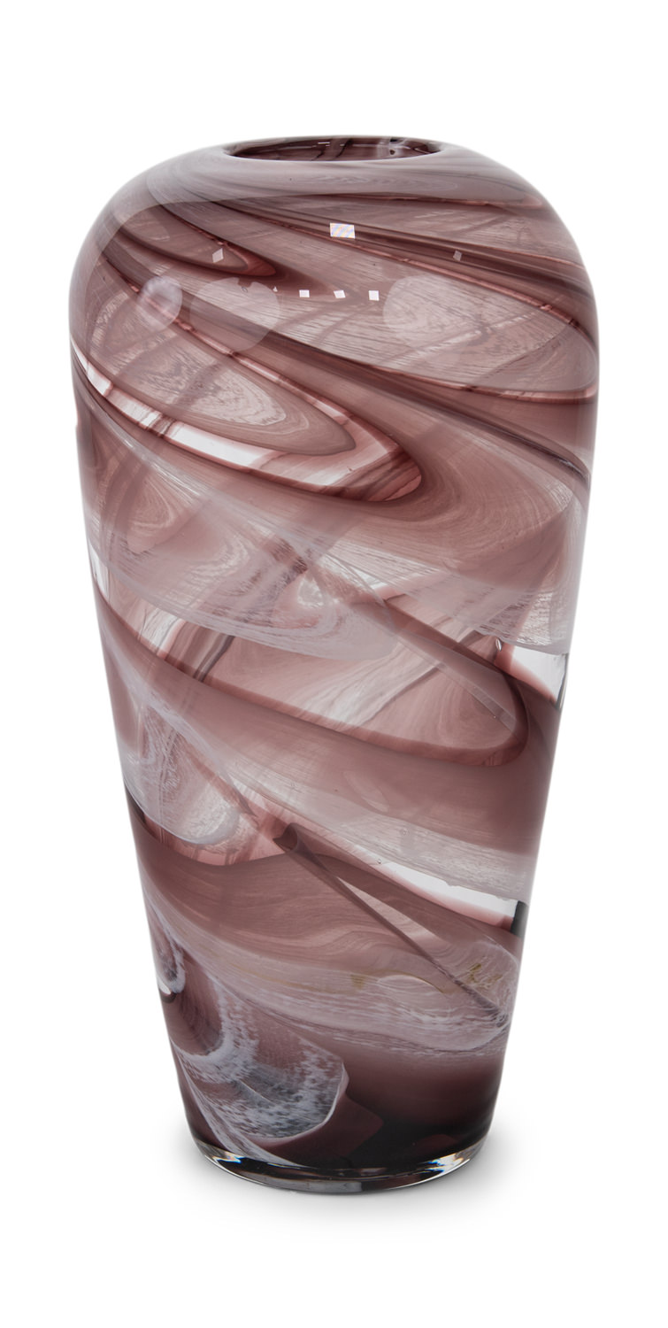 Introducing the Lainie Large Glass Vase by HOM Furniture, the perfect piece to elevate your home décor. This stunning blown glass vase features a mesmerizing swirl pattern in shades of brown and white, adding a touch of elegance to any room. Its generous size makes it ideal as the standing foundation for a beautiful faux floral bouquet, making it a versatile and eye-catching addition to your space. Elevate your interior design with the Lainie Large Glass Vase from HOM Furniture.