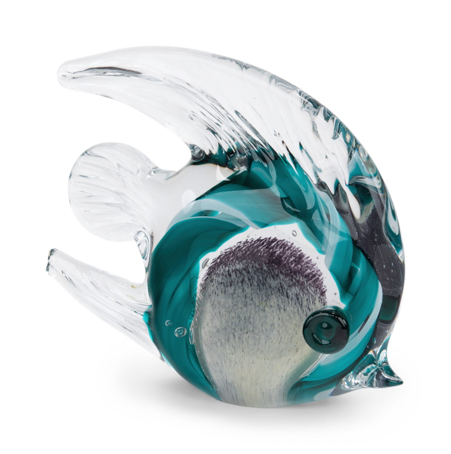 Introducing the Marlin Glass Fish from HOM Furniture - a whimsical and colorful addition to your décor! This stunning glass fish sculpture features a vibrant teal and purple color scheme, adding a playful touch to any space. Perfect for those looking to infuse some fun into their home, this charming piece is sure to catch the eye of all who see it. Bring a sense of joy and creativity to your surroundings with the Marlin Glass Fish from HOM Furniture.