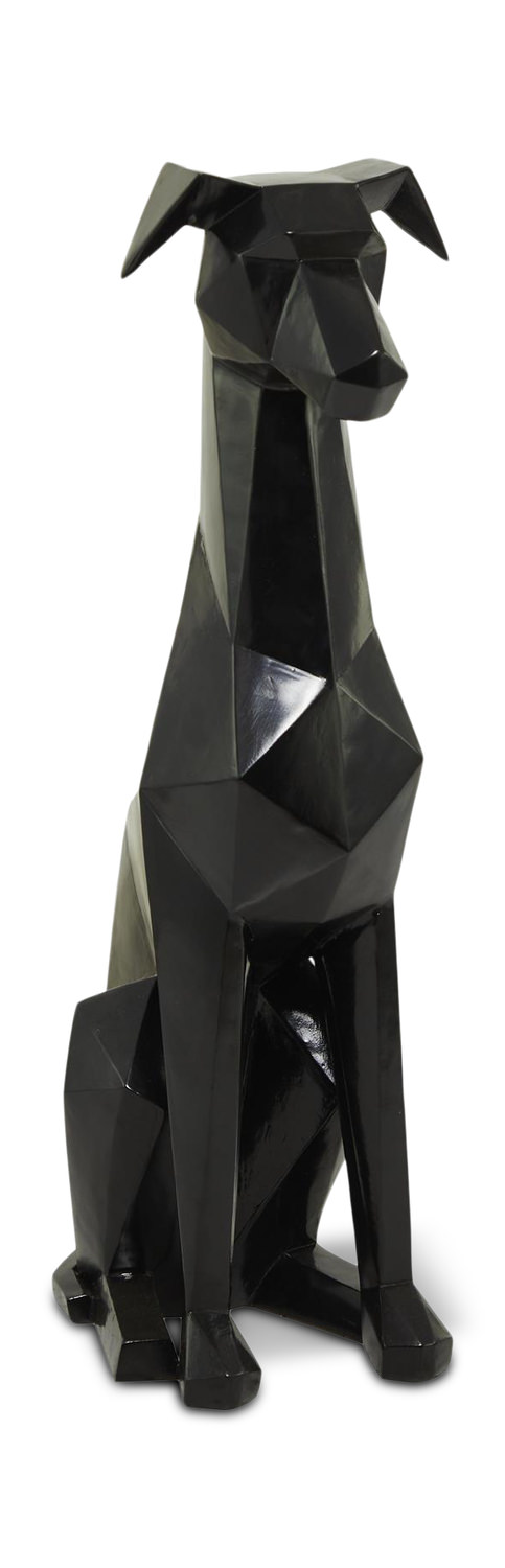 Introducing the Polystone Dog Figurine from HOM Furniture - a modern décor piece that will delight dog enthusiasts and art lovers alike. This unique figurine features a sitting dog silhouette with a cubism-inspired surface design, all finished in a sleek and polished black finish. Perfect for adding a touch of contemporary charm to any space, this Polystone Dog Figurine is a must-have for those looking to elevate their home décor with a stylish and artistic touch.
