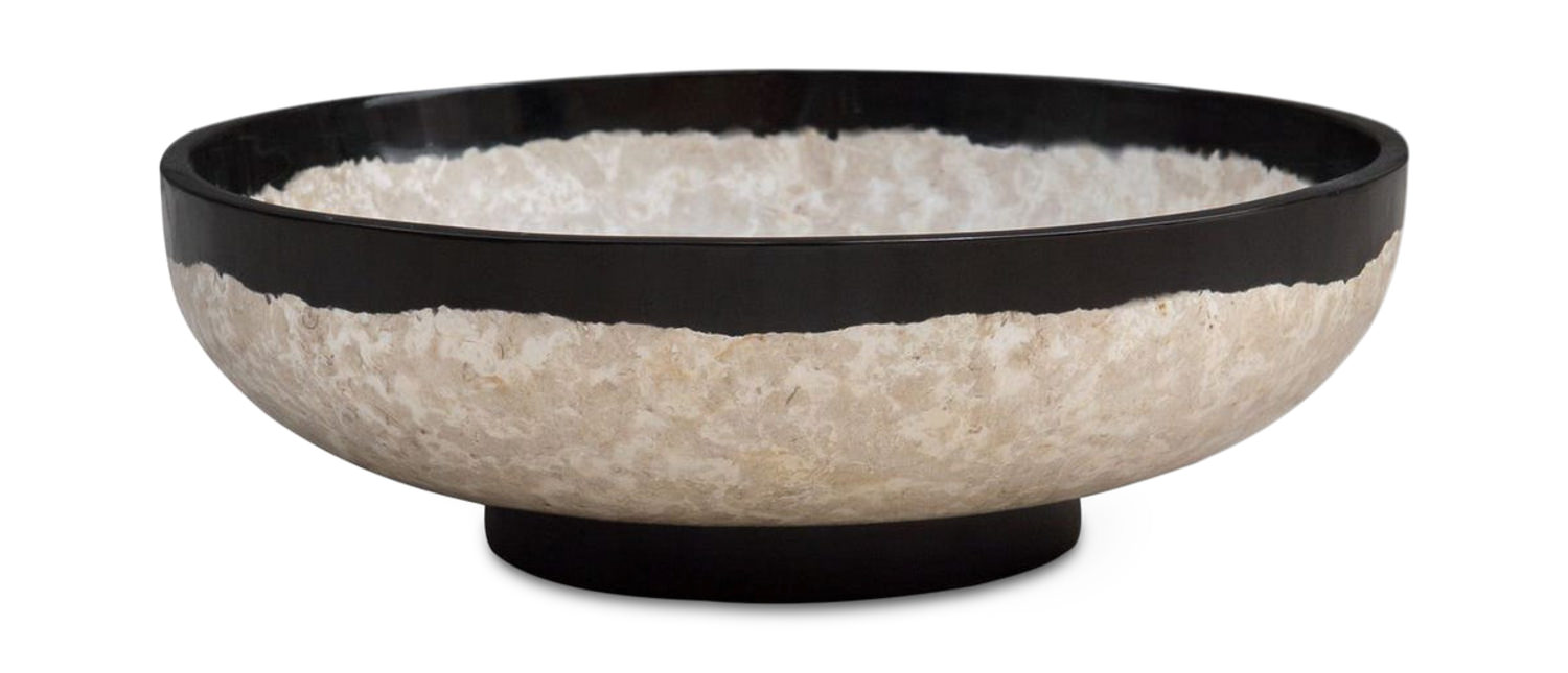 Introducing the Rastia Bowl from HOM Furniture, designed to add a touch of global-inspired charm to your living space. This stunning bowl features a neutral terrazzo look with a unique mix of black coral and resin along the rim, creating a one-of-a-kind aesthetic. Perfect for displaying as a decorative piece on your coffee table or kitchen island, the Rastia Bowl seamlessly blends style and functionality. Elevate your home décor with this versatile and eye-catching addition from HOM Furniture.