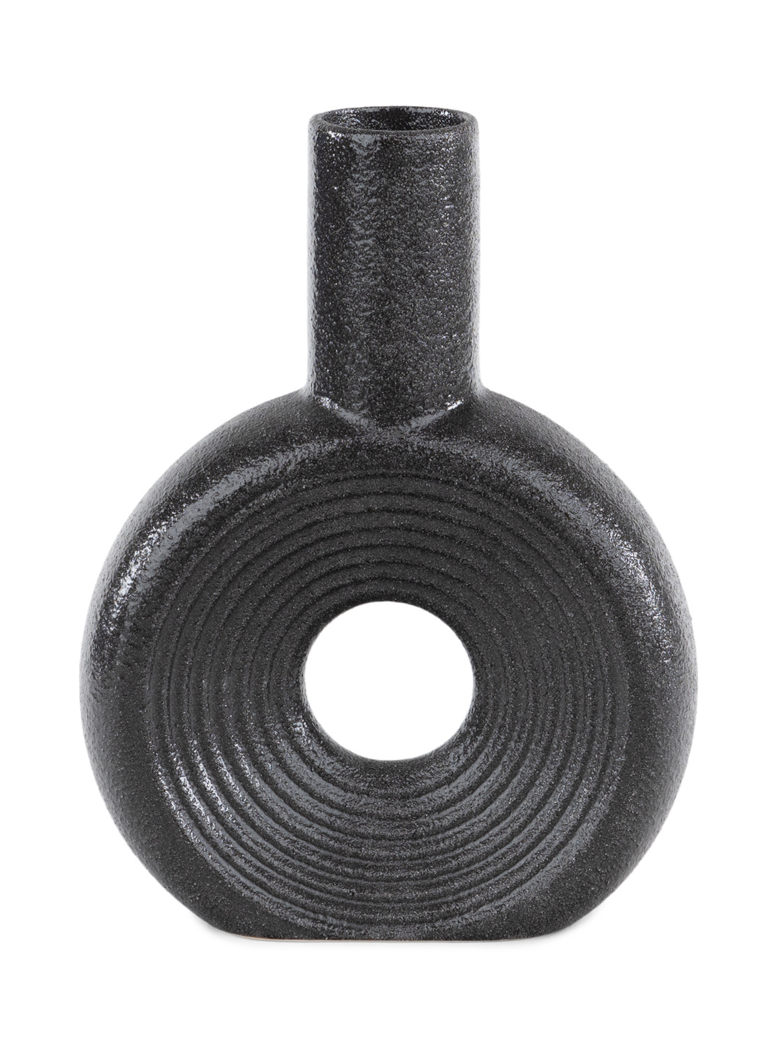 Introducing the Round Cut-Out Vase from HOM Furniture, an elegant and versatile decorative piece for your home. Crafted from ceramic with a sleek matte black finish, this vase features a unique round cut-out center that adds a modern touch to any space. Perfect for displaying on bookshelves, mantels, or side tables, this vase will effortlessly elevate your décor. Add a touch of sophistication to your home with the Round Cut-Out Vase from HOM Furniture.
