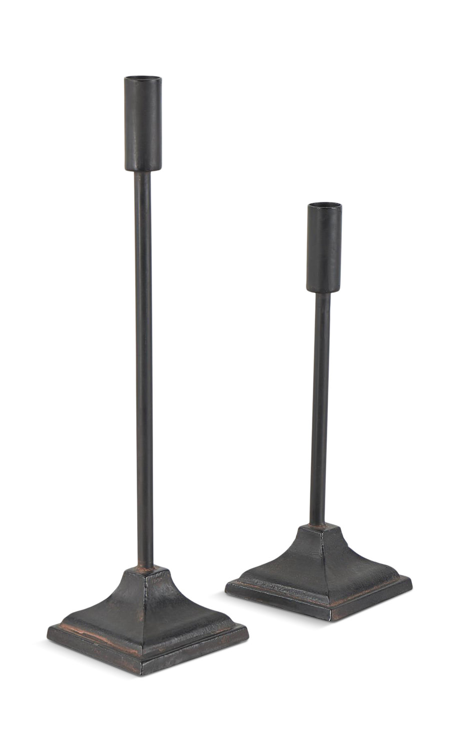 Introducing the Slim Taper Holder Set Of 2 from HOM Furniture, the perfect addition to elevate your space. Crafted from durable iron, these holders feature a sleek and sophisticated appearance with distressed tapered bases and light touches of copper and matte black. Versatile for any home design style, this set brings both interest and warmth into any room. Add a touch of elegance to your décor with these stylish and functional taper holders.