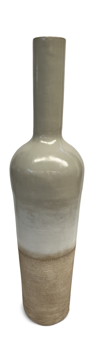 Introducing the Straight Neck Floor Vase from HOM Furniture, a stunning addition to your home décor. This handcrafted terracotta vase stands tall at 50", featuring a beautiful mix of green, white, and taupe colors. Each piece is carefully made by skilled artisans, ensuring a unique and high-quality product. Perfect for interior spaces and covered areas, this vase can easily be cleaned with a damp cloth. Add a touch of elegance and sophistication to your living space with this exquisite floor vase from HOM Furniture.