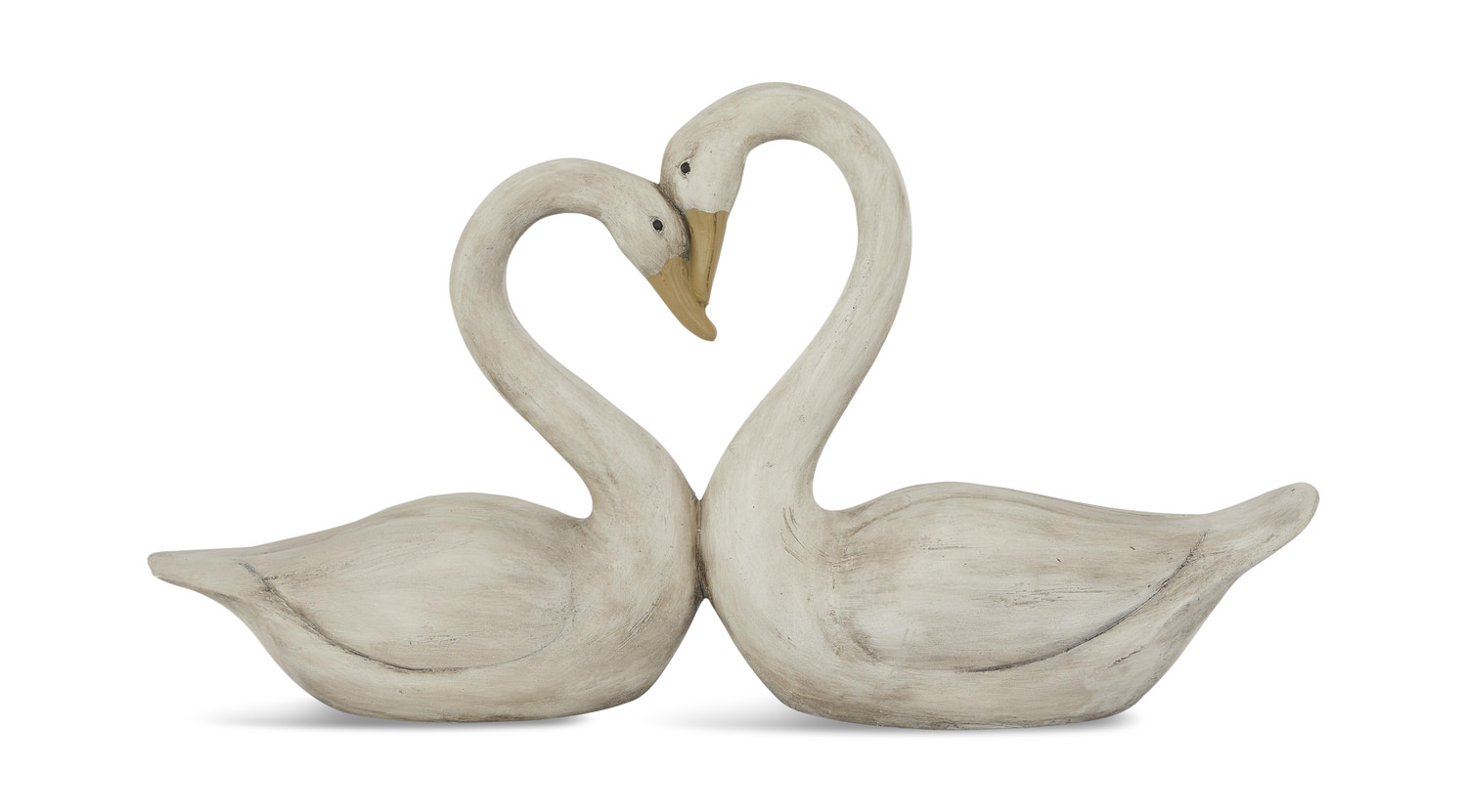 Bring a touch of elegance and romance to your outdoor space with the Swan Lovers Sculpture from HOM Furniture. Crafted with a distressed white body and a charming yellow beak, this sculpture features a swan couple gracefully entwined, their necks and heads forming a heart shape. Perfect for adding a whimsical touch to your garden or patio, this sculpture is sure to be a conversation starter. Embrace the beauty of nature with the Swan Lovers Sculpture from HOM Furniture.
