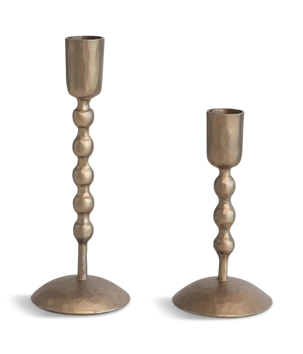 Introducing the exquisite Taper Holders from HOM Furniture, the perfect addition to elevate your space with a touch of sophistication and charm. Crafted with a Nancy Meyers aesthetic in mind, these holders feature hand-forged iron with an antique brass finish that exudes elegance and timeless beauty. This set of 2 Taper Holders not only adds interest to your space but also brings a warm, inviting glow when paired with your favorite taper candles. Whether placed on a mantel, dining table, or bedside, these holders will effortlessly enhance the ambiance of any room.