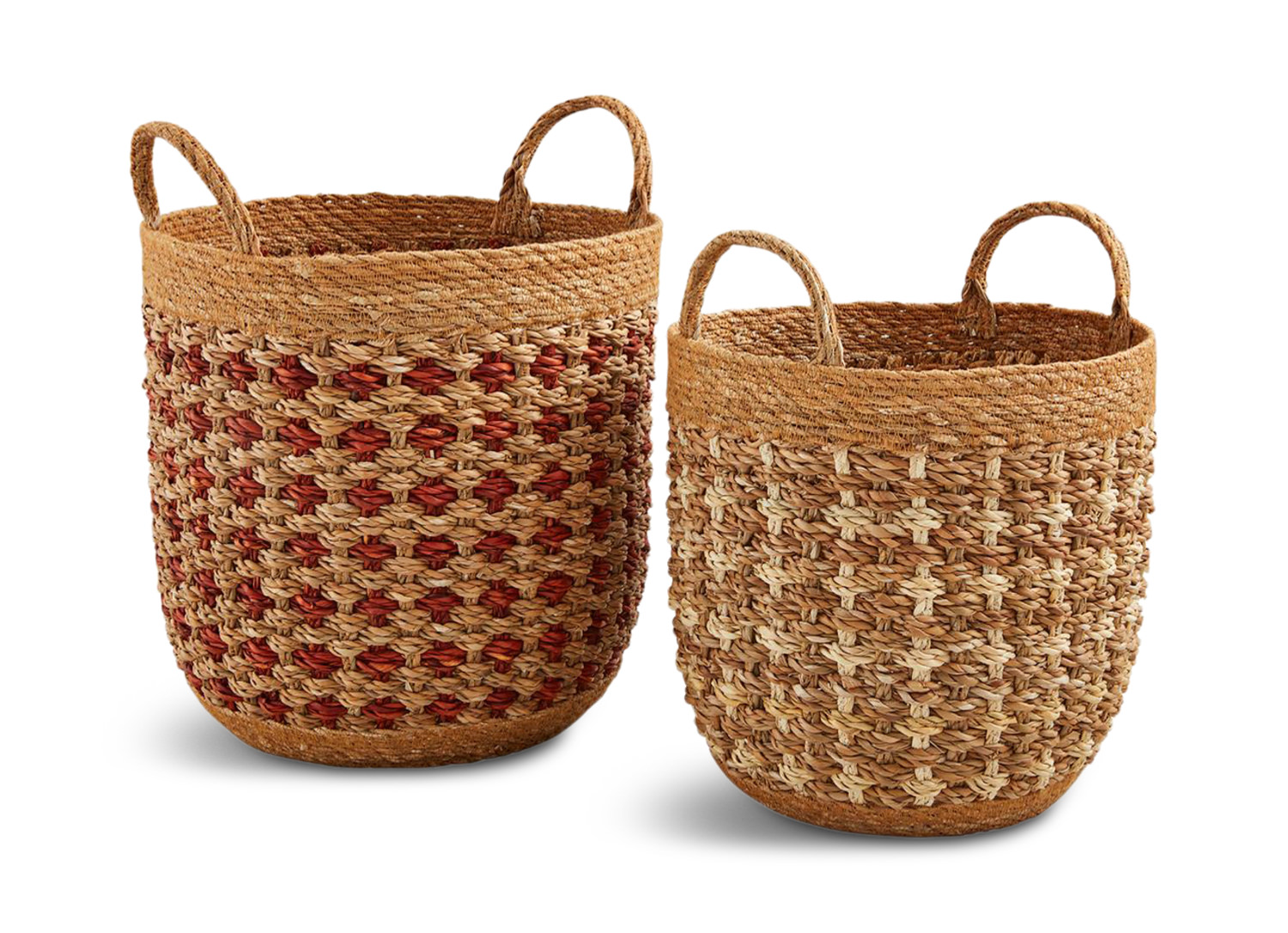 Introducing the perfect storage solution for your home - the Terracotta and Cream Seagrass Baskets from HOM Furniture! This set of 2 nested baskets is not only practical but also adds a touch of casual style to any room. Made from braided seagrass in a lovely tan color, these baskets are versatile enough to hold blankets, plants, or any other spare items you need to tuck away. These baskets are spacious enough to meet your storage needs.