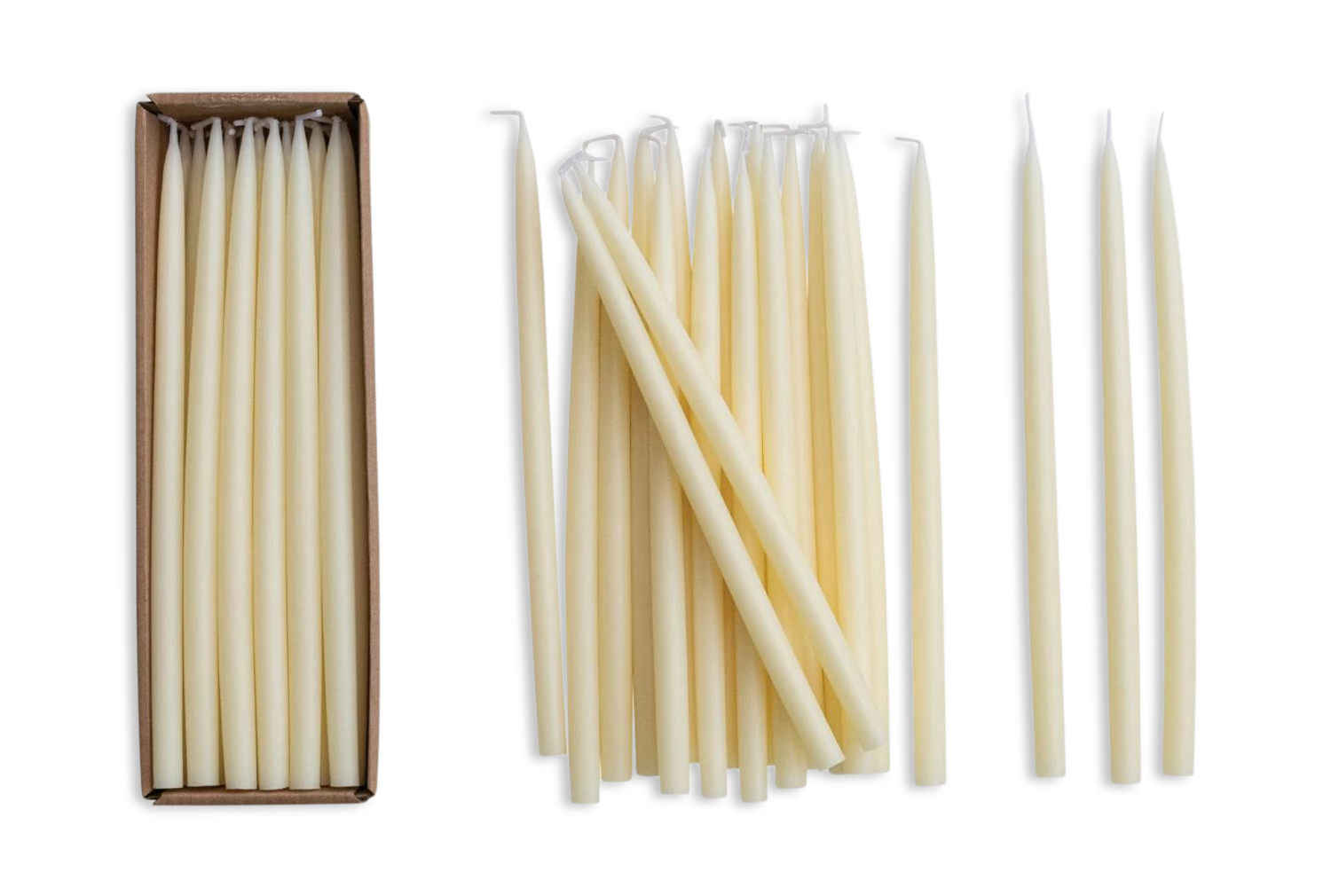 Introducing the HOM Furniture unscented Thin Taper Candles - a box of 24 elegant candles perfect for creating a warm and inviting ambiance in any space. Each candle is 1/2" round and has an estimated burning time of 3 hours, making them ideal for dinner parties, special occasions, or everyday use. The ivory color of these candles pairs beautifully with any thin taper candle holder, adding a touch of sophistication to your décor. Add a touch of warmth and style to your home with these versatile and timeless candles from HOM Furniture.