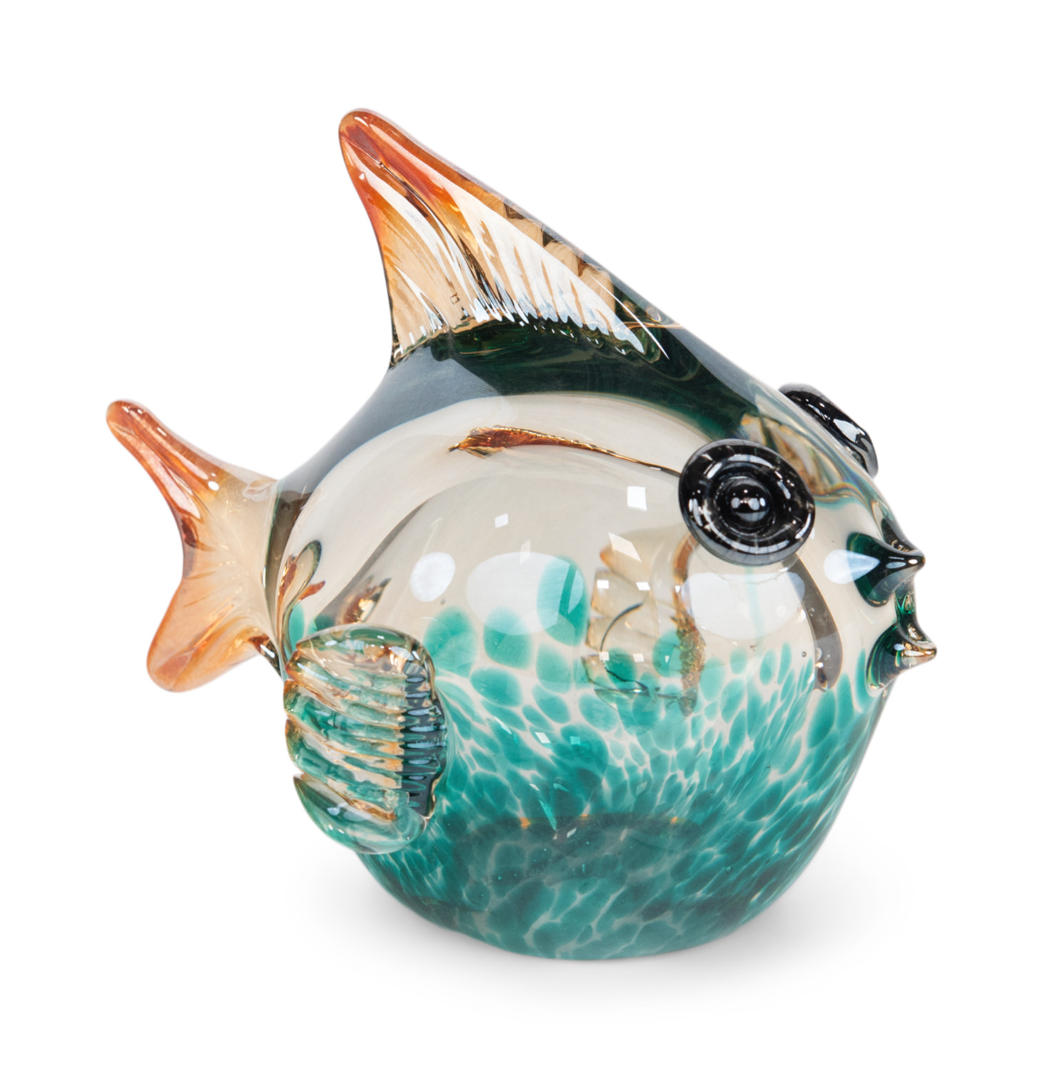 Introducing the Tropical Blowfish sculpture from HOM Furniture, a stunning piece that adds a spark of color to any space. This unique sculpture features a captivating blend of orange and teal hues, creating a vibrant and eye-catching display. Crafted from high-quality glass, the Blowfish sculpture is not only visually striking but also durable and long-lasting. Perfect for adding a touch of personality to your home décor, this piece is sure to be a conversation starter. Upgrade your living space with the Tropical Blowfish sculpture from HOM Furniture today.