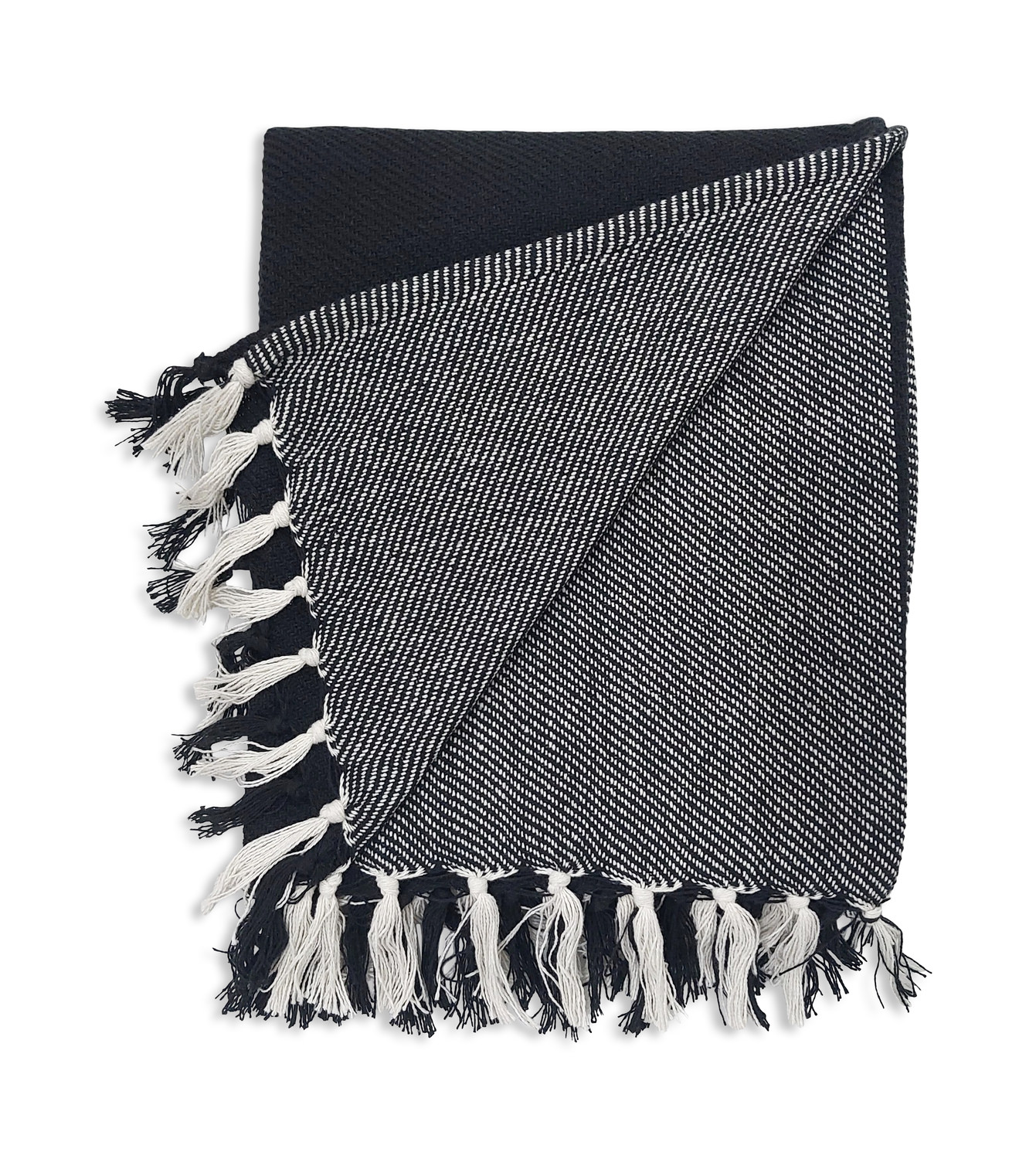Introducing the stylish Large Plaid Fringe Throw from HOM Furniture! Made from 100% cotton, this throw is not only cozy but also versatile. One side features a sleek solid black design, while the other side showcases a trendy black and white plaid pattern, allowing you to switch up your décor whenever you please. The tied fringe adds a charming detail, making this throw a perfect addition to your bed or a stylish accent when draped over your sofa. Add a touch of sophistication and comfort to your home with the Large Plaid Fringe Throw from HOM Furniture!