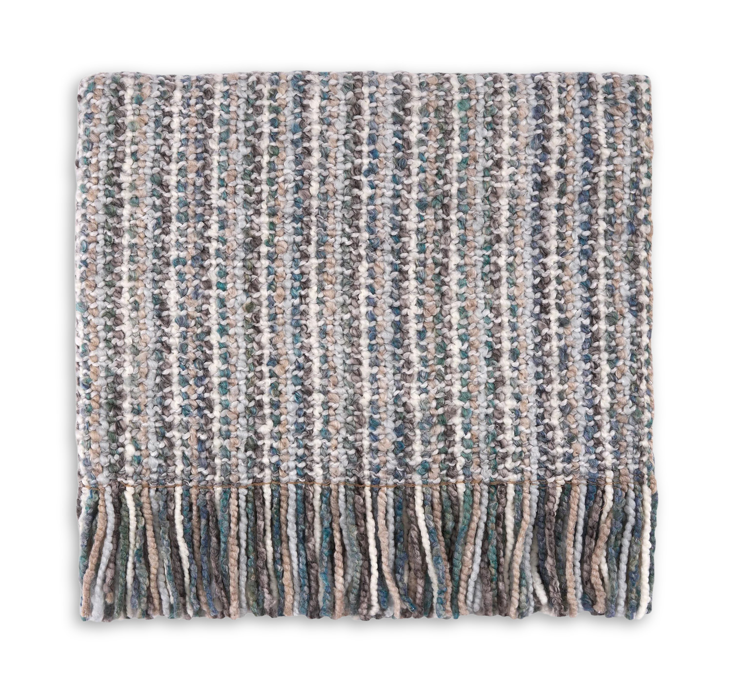Introducing the Stria Fringe Frost Throw from HOM Furniture, a delightful addition to your home décor. This throw boasts a charming mix of browns, greens, blues, and creams, thanks to its unique yarn blending capabilities. Its fringed edges on two sides add a touch of elegance to any setting, making it perfect for cozy nights in. Add a pop of color and warmth to your space with this stylish and versatile throw from HOM Furniture.