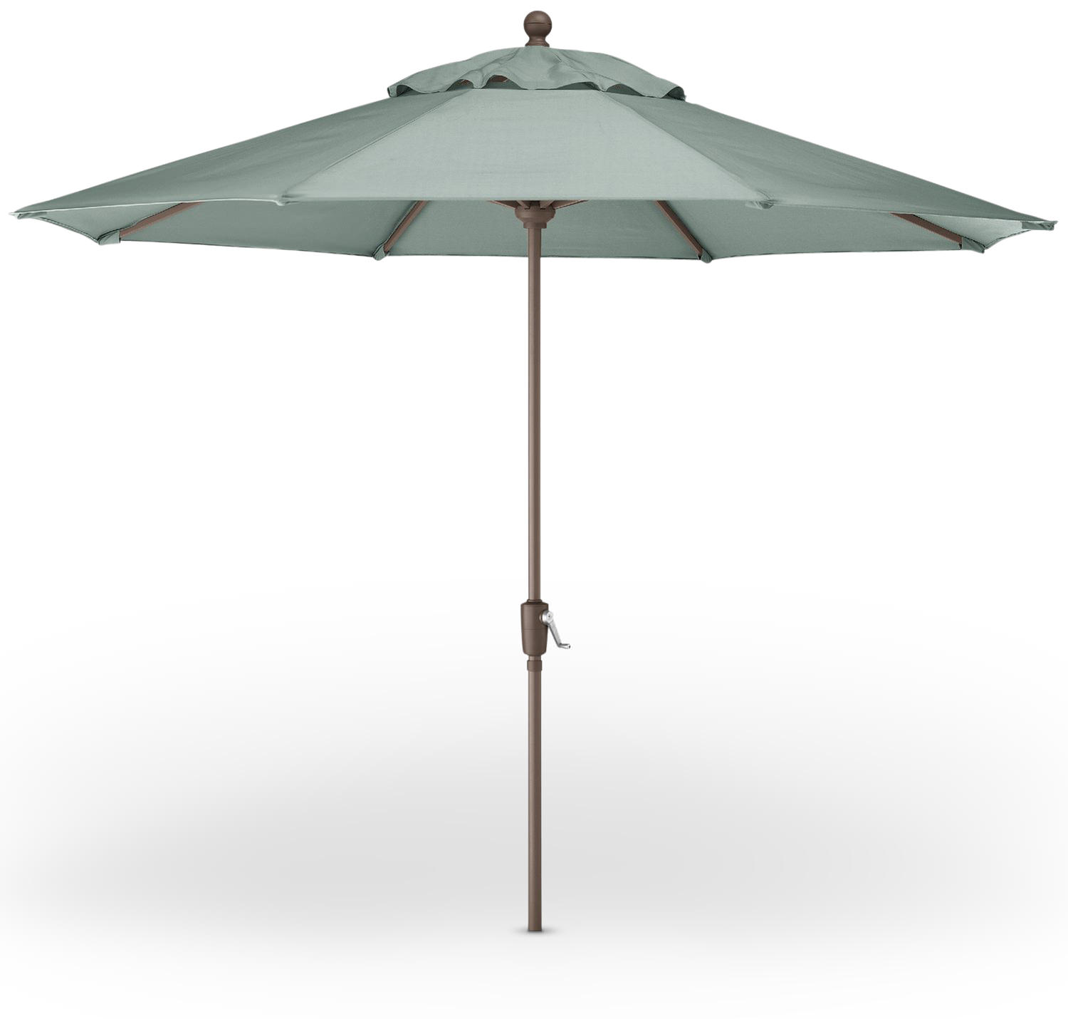 This 9' Patio Umbrella is made of a lightweight aluminum frame with a durable powder coat finish. The 8-ribbed aluminum frame is secured to the pole using strong weather resistant PVC materials sure to last for years of enjoyment on your patio or deck. The umbrella features a high grade kevlar mesh cord that won't frey or break unlike cheap umbrellas which use plain rope. This umbrella features an infinite auto tilt mechanism which will tilt after the umbrella is fully opened, simply keep cranking and stop at the desired tilt angle. The canopy consists of 100% solution dyed fabrics which will resist fading and carries a 4-year warranty against fading. We recommend using a 50' base weight for this umbrella under normal wind condition areas and adding the 30' additional base weight for high wind areas.