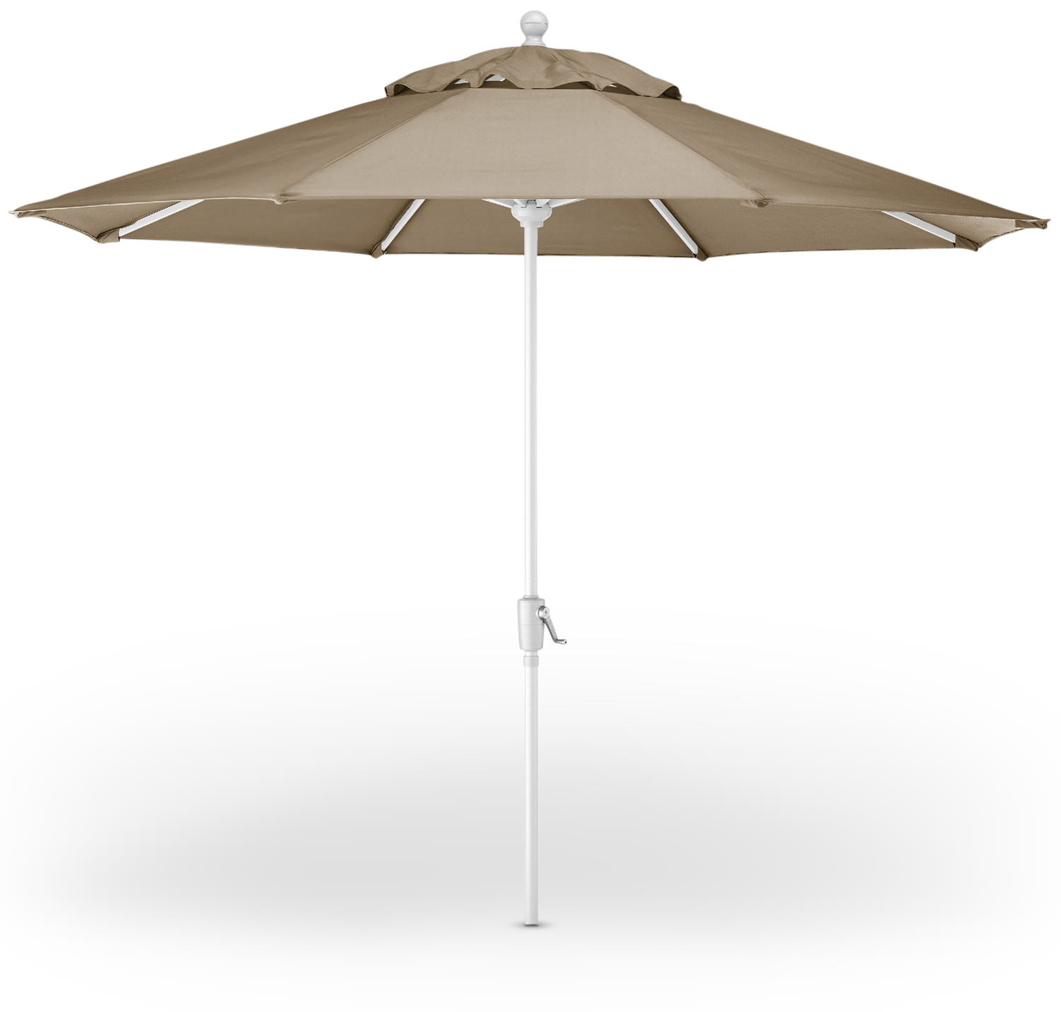 This 9' Patio Umbrella is made of a lightweight aluminum frame with a durable powder coat finish. The 8-ribbed aluminum frame is secured to the pole using strong weather resistant PVC materials sure to last for years of enjoyment on your patio or deck. The umbrella features a high grade kevlar mesh cord that won't frey or break unlike cheap umbrellas which use plain rope. This umbrella features an infinite auto tilt mechanism which will tilt after the umbrella is fully opened, simply keep cranking and stop at the desired tilt angle. The canopy consists of 100% solution dyed fabrics which will resist fading and carries a 4-year warranty against fading. We recommend using a 50' base weight for this umbrella under normal wind condition areas and adding the 30' additional base weight for high wind areas.