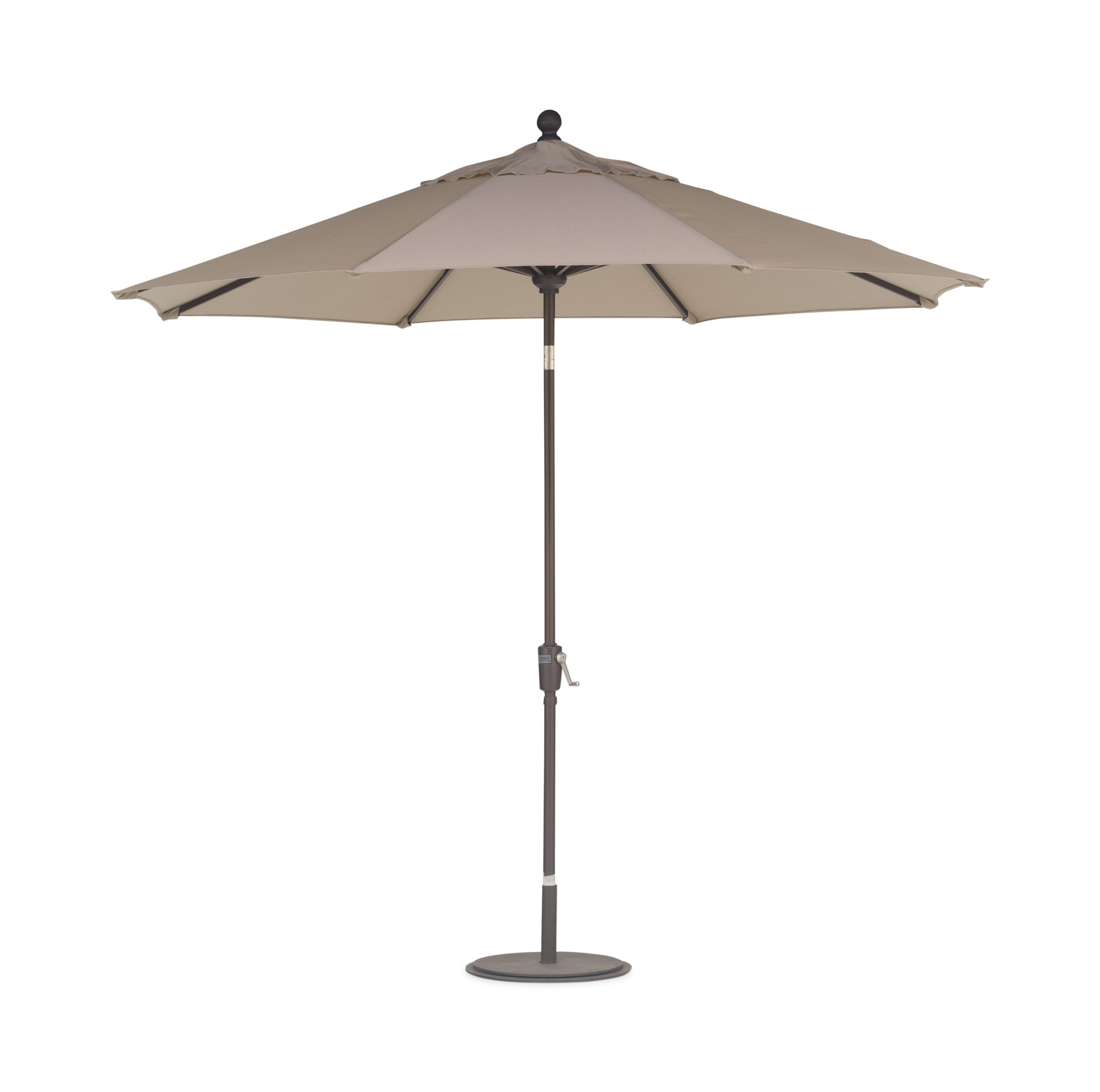 This 9' Market Patio Umbrella is made of a lightweight aluminum frame with a durable powder coat finish-bronze. The 8-ribbed aluminum frame is secured to the pole using strong weather-resistant PVC materials sure to last for years of enjoyment on your patio or deck. The umbrella features a high-grade kevlar mesh cord that won't frey or break. This umbrella will tilt by using a button at the top of the mechanism below the canopy after the umbrella is fully opened. The canopy consists of 100% solution-dyed solefin fabric which will resist fading. We recommend using a 50 lb base weight for this umbrella under normal wind condition areas and adding the 30 lb additional base weight for high wind areas.