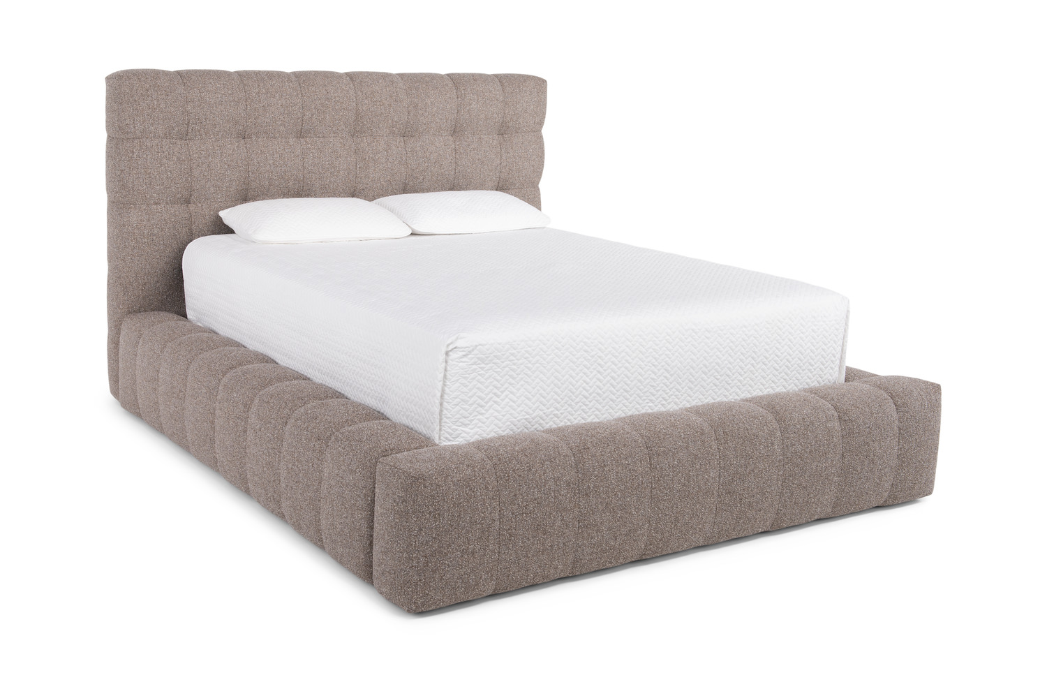 Transform your bedroom into a luxurious sanctuary with the Dominic Upholstered Bed. This exquisite platform bed features a sleek modern design and is expertly crafted with a sturdy Euro slat system, eliminating the need for a box spring. Available in a rich brown color and crafted from high-quality fabric material, the Dominic Bed exudes elegance and sophistication. With the option for custom orders in hundreds of fabrics, you can create a personalized piece that perfectly suits your style. Special orders are always welcome, making it easy to tailor this stunning bed to your fabric selection.