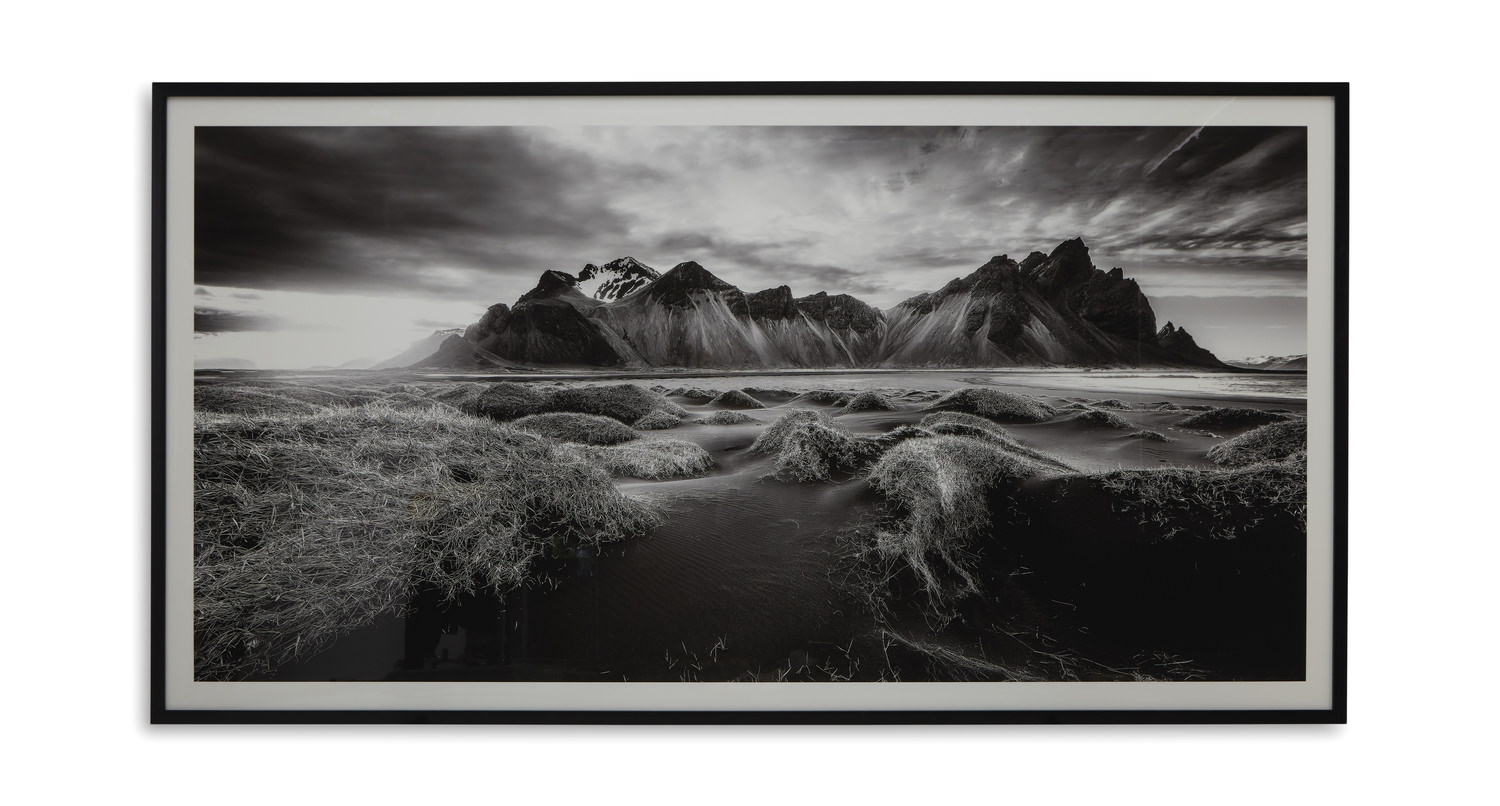 Introducing the Blackstone Wall Art from HOM Furniture, a visually captivating piece that brings the beauty of nature into your home. This striking landscape print features a stunning black and white depiction of majestic mountains and a meandering stream, adding a touch of moody elegance to any space. The sleek black frame and acrylic front provide a modern finish, making it a perfect addition to your décor. Add a touch of nature-inspired charm to your walls with the Blackstone Wall Art from HOM Furniture.