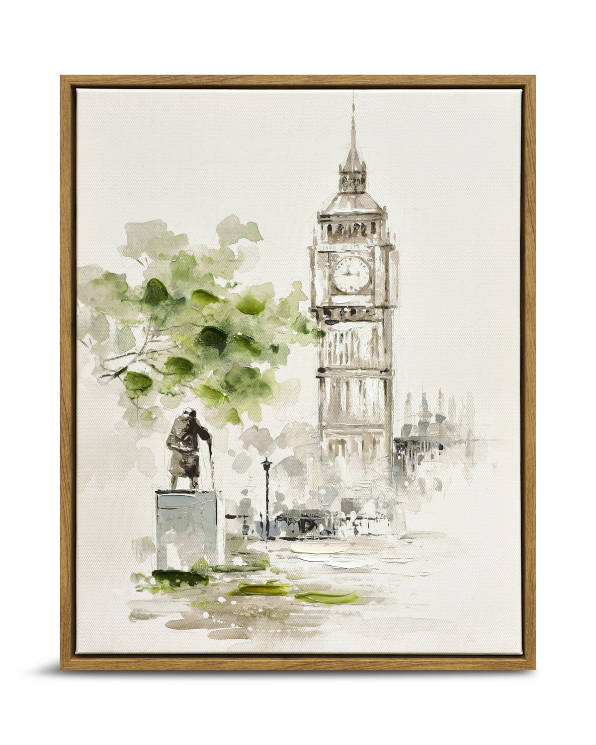 Immerse yourself in the charming allure of London with the "Dearest Ben" Framed Canvas from HOM Furniture. This exquisite piece is a must-have for anyone who adores the bustling city of London. The neutral color scheme with a delightful pop of green perfectly complements the watercolor image of London's iconic clock tower, fondly known as Big Ben. The warm brown frame adds a touch of elegance to this casual style artwork, making it a captivating addition to any space. Let the beauty of London grace your walls with this stunning cityscape piece from HOM Furniture.