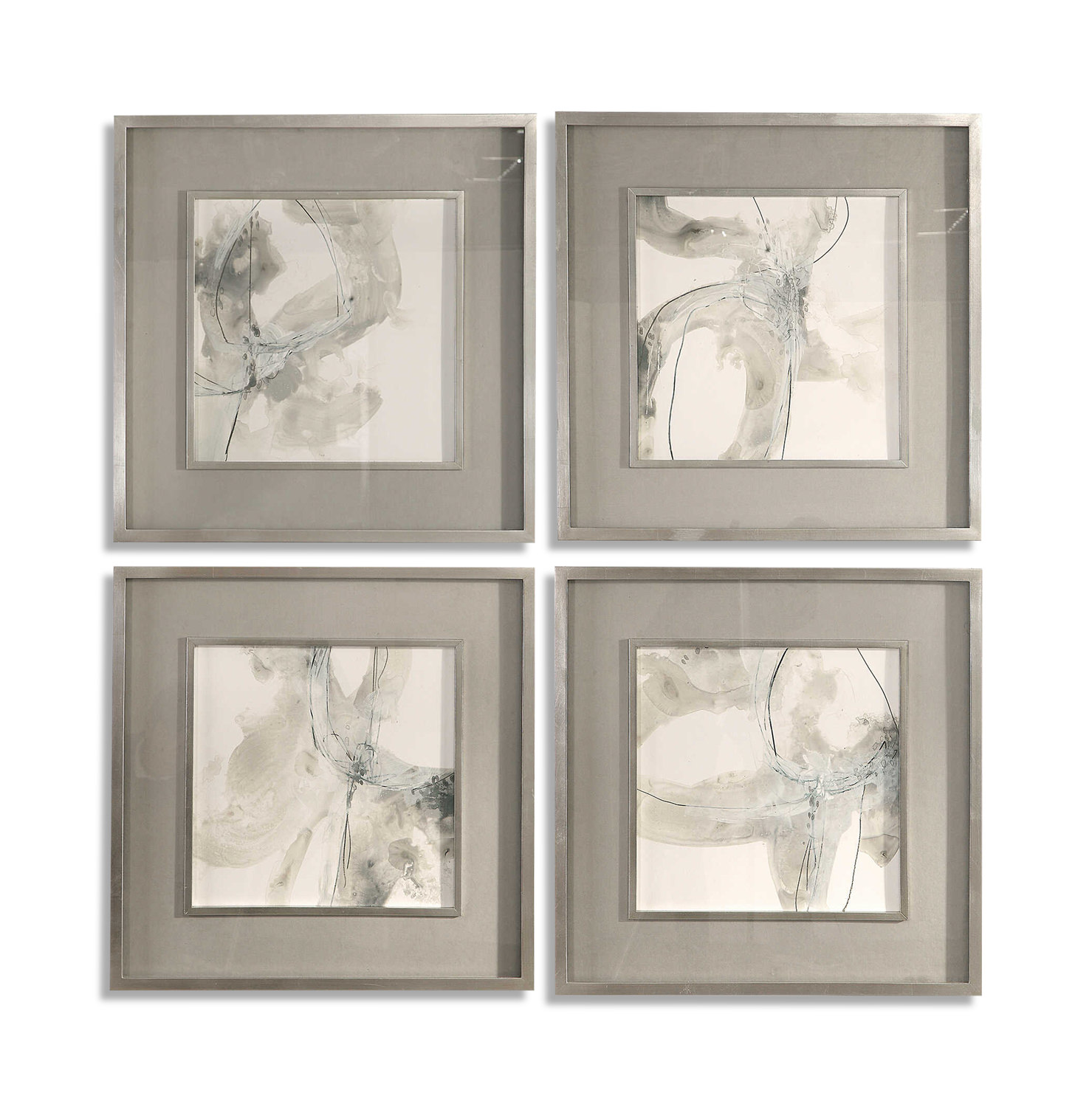 Elevate your space with the stunning Divination Abstract Art Set/4 from HOM Furniture. These contemporary art prints feature a unique and minimalist design, created by the talented artist June Erica Vess. The earthy neutral tones of warm gray, charcoal, and off-white beautifully complement the bright silver leaf frames and fillets, creating a sophisticated and modern aesthetic. Each print is elegantly presented with a warm gray mat and placed under protective glass to preserve its beauty. Add a touch of artistic flair to your home with this exquisite Uttermost brand artwork.