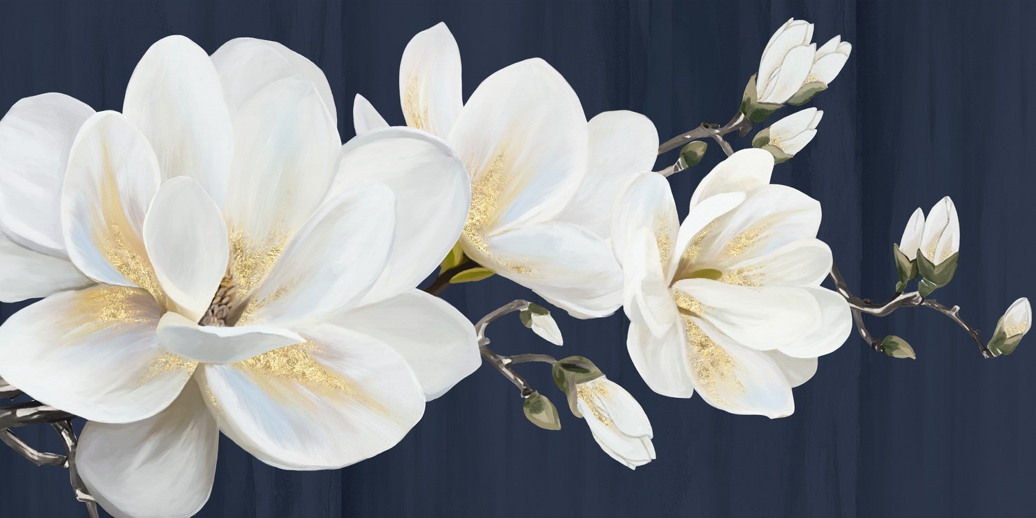 The beauty of blossoms on the branch is exemplified in the Floral Embrace Canvas Art. This presentation on canvas, equals that of a photograph, and these beautiful white flowers and buds are life-like enough, it could inspire the viewer to reach out and want to touch them. The dark background is a perfect landscape, for these blooms with golden centers and green-lined buds, which pop with enthusiasm, despite their dainty and softer appearance.