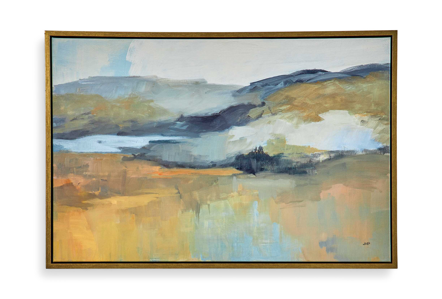 Elevate your living space with the exquisite Folded Hills Framed Landscape Art by HOM Furniture. This captivating canvas art piece showcases an abstract landscape in cool sky blue and honey yellow hues, adding a touch of tranquility to your décor. The artwork by renowned artist Julia Purinton is proudly handcrafted and printed in the USA, ensuring premium quality and attention to detail. The Folded Hills Framed Canvas comes impeccably framed in a solid wood gallery frame with a luxurious gold finish, enhancing its elegance and sophistication.