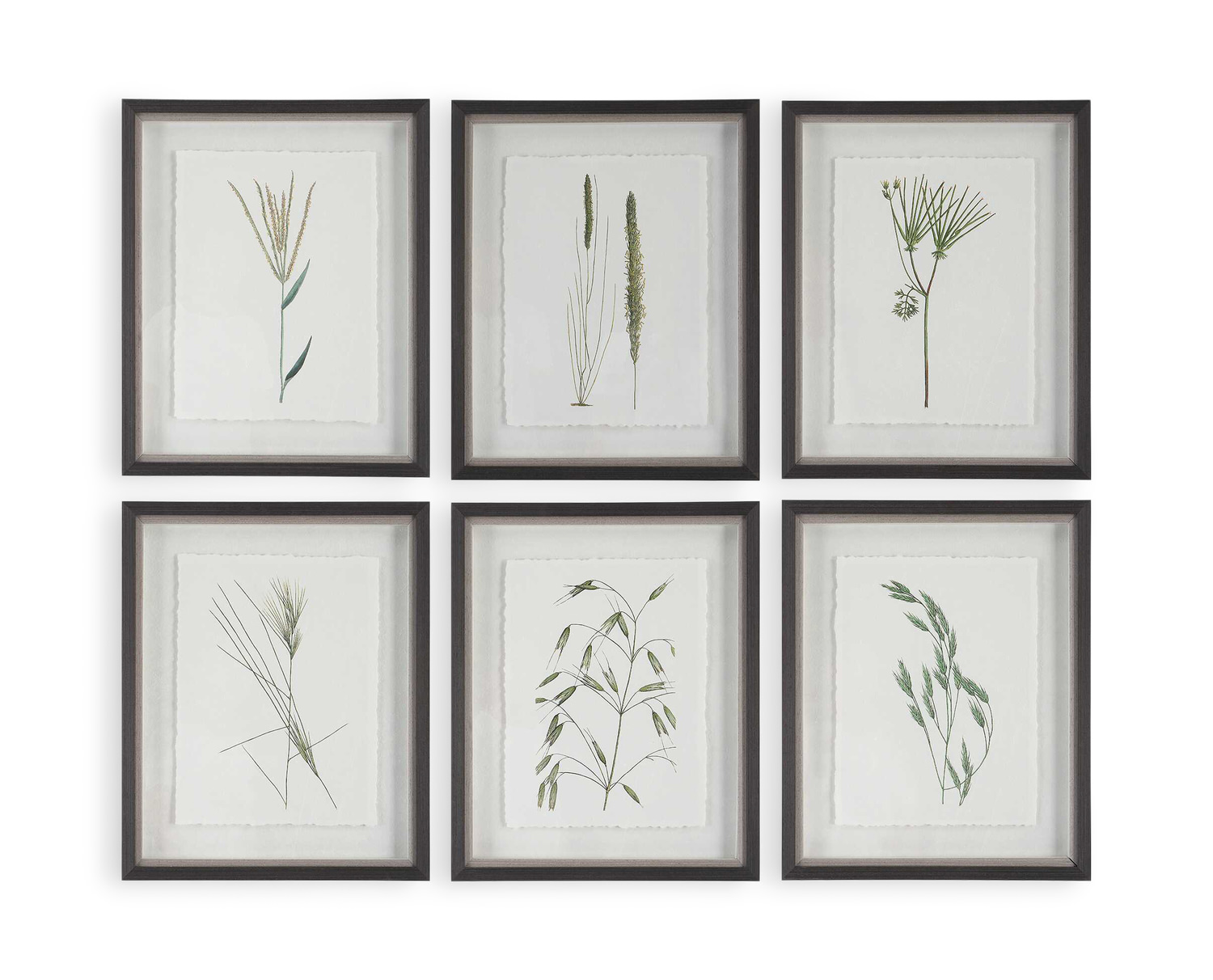 Immerse yourself in the beauty of nature with the Forest Finds Framed Prints Set from HOM Furniture. This exclusive collection showcases nature's finest findings in a set of six prints, each printed on textured art paper with delicate deckled edging for a touch of elegance. Each print is carefully mounted in a framed shadowbox style, featuring a wooden frame in a rich dark espresso finish with a rustic gray inner liner, all under protective glass. The textured white paper backing enhances the intricate details of the prints, while the vibrant green color palette brings a refreshing burst of botanical charm to any space.
