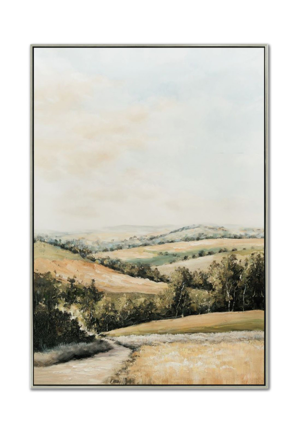Introducing the exquisite Golden Valley II Framed Art from HOM Furniture. This stunning piece features a champagne-finished floating frame that adds a touch of elegance to any space. Each piece is hand embellished, ensuring a unique and artisanal touch. Pair it with the Golden Valley I for a larger landscape masterpiece that will captivate your guests. Its casual style effortlessly blends into any décor, adding a warm and inviting atmosphere to your home.