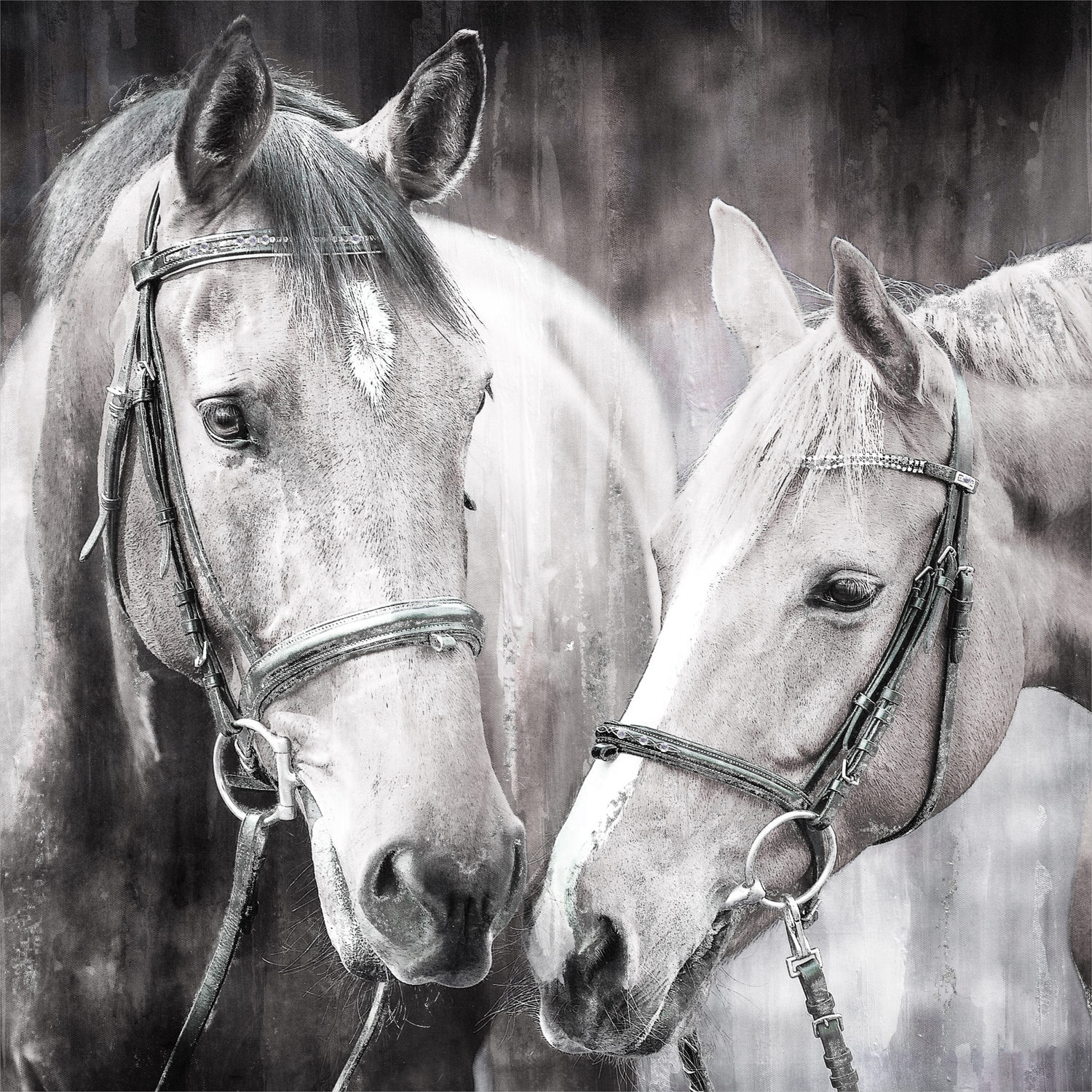Two friends, standing nose to nose, Harry & Hannah, depicted in black and white, on canvas. They are both alert and interested in the day's happenings. A great print for the equestrian lover, or a great addition for modern farmhouse decor.