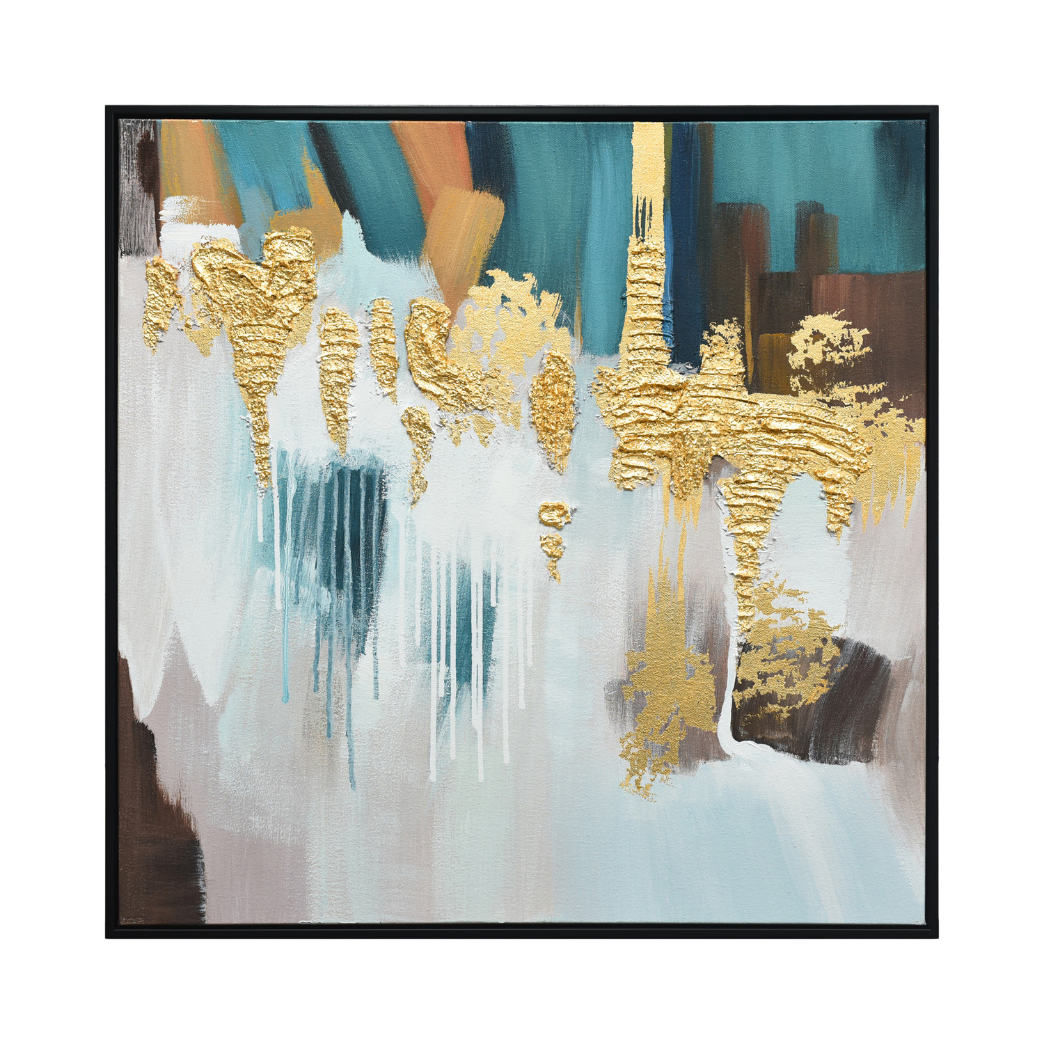 Introducing the Luminous Luster Framed Canvas Art by HOM Furniture, a captivating piece that seamlessly blends modern aesthetics with timeless elegance. This stunning artwork features a sleek black frame that beautifully complements the intricate design. With 50% of the piece hand-painted, each stroke showcases the artist's meticulous craftsmanship, adding a touch of authenticity to your space. The accent gold foil detailing adds a subtle hint of luxury, elevating the overall allure of the artwork. Perfect for adding a modern spin to any room, the Luminous Luster Framed Canvas Art is sure to be a focal point in your home décor collection.