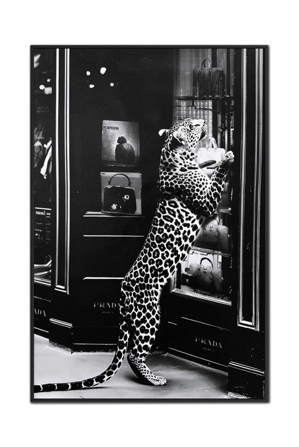 Step into the wild with this striking framed art piece from HOM Furniture. A sleek black floating frame surrounds a captivating image of a wild cat on its hind legs, boldly leaning against the glass of a storefront. This modern and stylish artwork is hand embellished, adding a touch of luxury to your space. The black and white hues create a sophisticated contrast, perfect for adding a touch of adventure to any room. Let this piece from HOM Furniture bring a touch of the wild into your home.