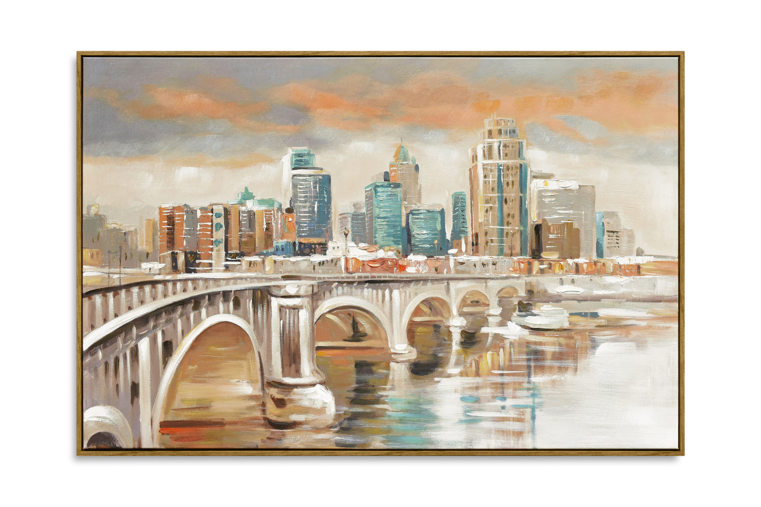 Immerse yourself in the stunning cityscape of the Twin Cities of Minnesota with the Still Pretty City Framed Canvas from HOM Furniture. This exquisite artwork features warm colors that evoke feelings of comfort and coziness, perfect for adding a touch of casual style to any space. The frame is finished in a light brown hue, beautifully complementing the cityscape subject, inviting you to gaze upon the urban beauty with a sense of adventure. Bring warmth and charm to your home with this captivating piece that will surely captivate your imagination and elevate your décor to new heights.