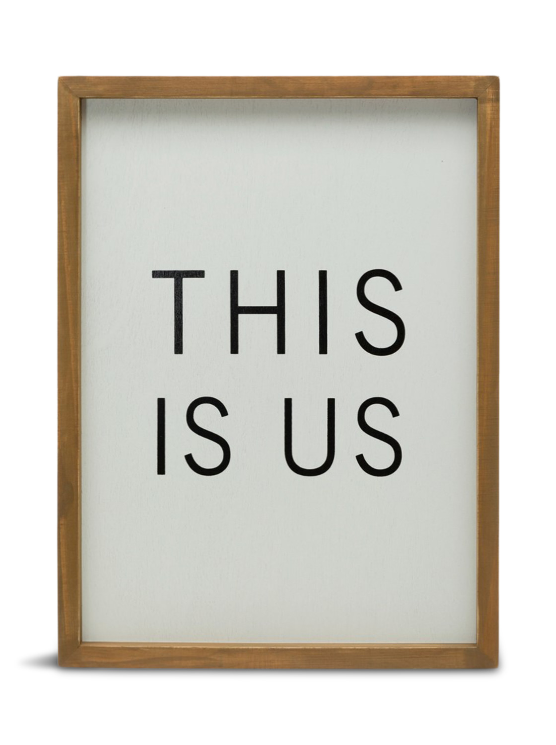 A simple, naturally finished wood frame with a white background and message in black lettering, This Is Us wall decor is similarly uncomplicated. Clean, construction and concise statement, this framed piece will suit any location in a casual environment.