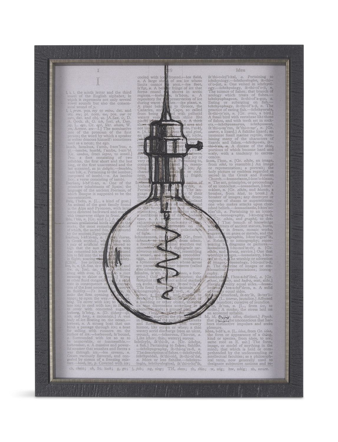 Add a classic touch to your decor with these unique framed primitive art pieces, Vintage Page I or II. Featuring a newspaper print background, a vintage bulb sketch looms in trending black/white. The simple frame has the perfect combination of classic styling with modern appeal, for a timeless look. Sophisticated, yet minimal design, you can add an understated touch of charm to any room. These would make a great gift for anyone that loves vintage-inspired decor'. Display them together for double the impact!