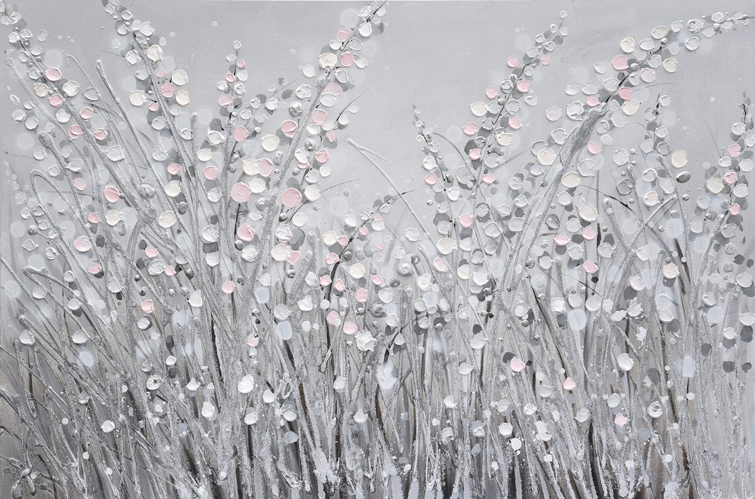 Liven up your walls with the ethereal White Spring Canvas Art. This piece of art is painted to resemble bright white flower blossoms in the peak blooming season of spring. The grey monotone color palette is accented with the thick drops of white paint that illustrate the bountiful flowers dotting each branch. The size of this piece of art make it perfect to hang above a sofa in a living room. That way you are mimicking the long lines of the furniture with the same proportions of the art as well as adding a neutral accent that will create a sophisticated aesthetic for your room.