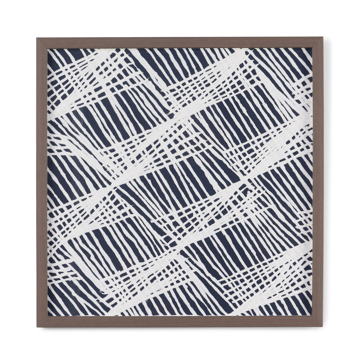 Intersecting, diagonal lines in black and white, the Framed Paper ArtZ wall decor, is framed with a natural tone, and narrow frame. Both thick and thin lines cover the full face of this unique paper piece. Transitional to modern inspiration, this decor' will bring a fun contrast to your space.