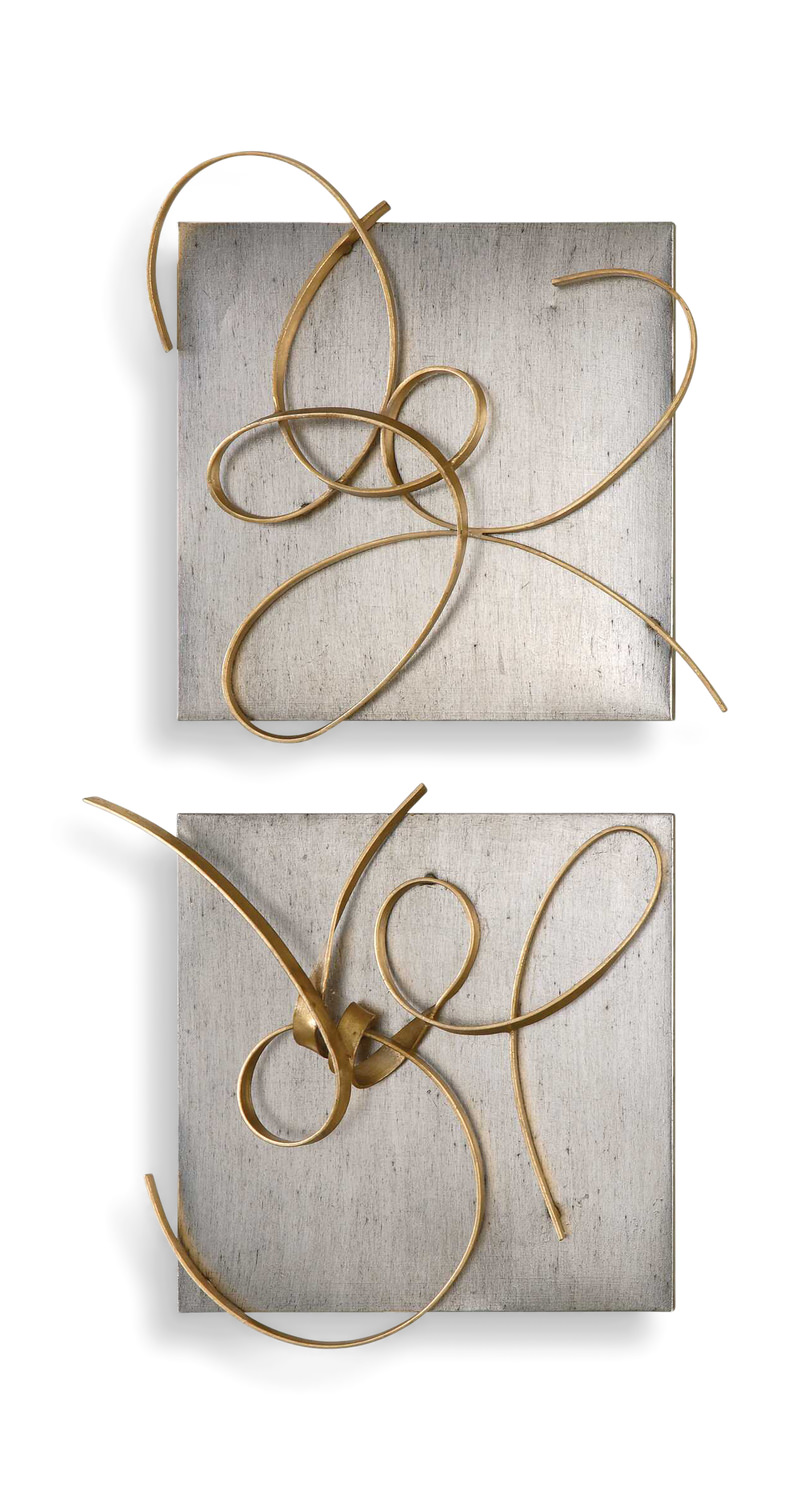 Elevate your space with the exquisite Hand Forged Gold Leaf Metal Art attached to a metal plaque finished in a lightly burnished silver leaf. This abstract piece from Uttermost brand exudes luxury and sophistication with its intricate design and stunning gold color. Add a touch of elegance to your decor with this unique artwork that is sure to be a conversation starter in any room. Transform your walls with the Harmony Metal Wall Art Set/2. Crafted with precision and artistry, this set exudes a sense of harmony and balance. The intricate details and contemporary design make it a standout piece for any modern space.