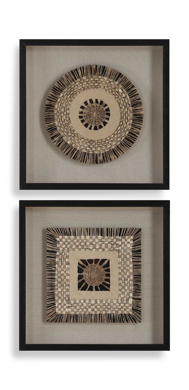 • The Intertwine Shadow Boxes Are Woven Together Like An Heirloom Tapestry. Featuring Knit Paper Dyed In Natural Earth Tones Over A Beige Linen Backing And Framed In Satin Black Finished Pine Wood.
